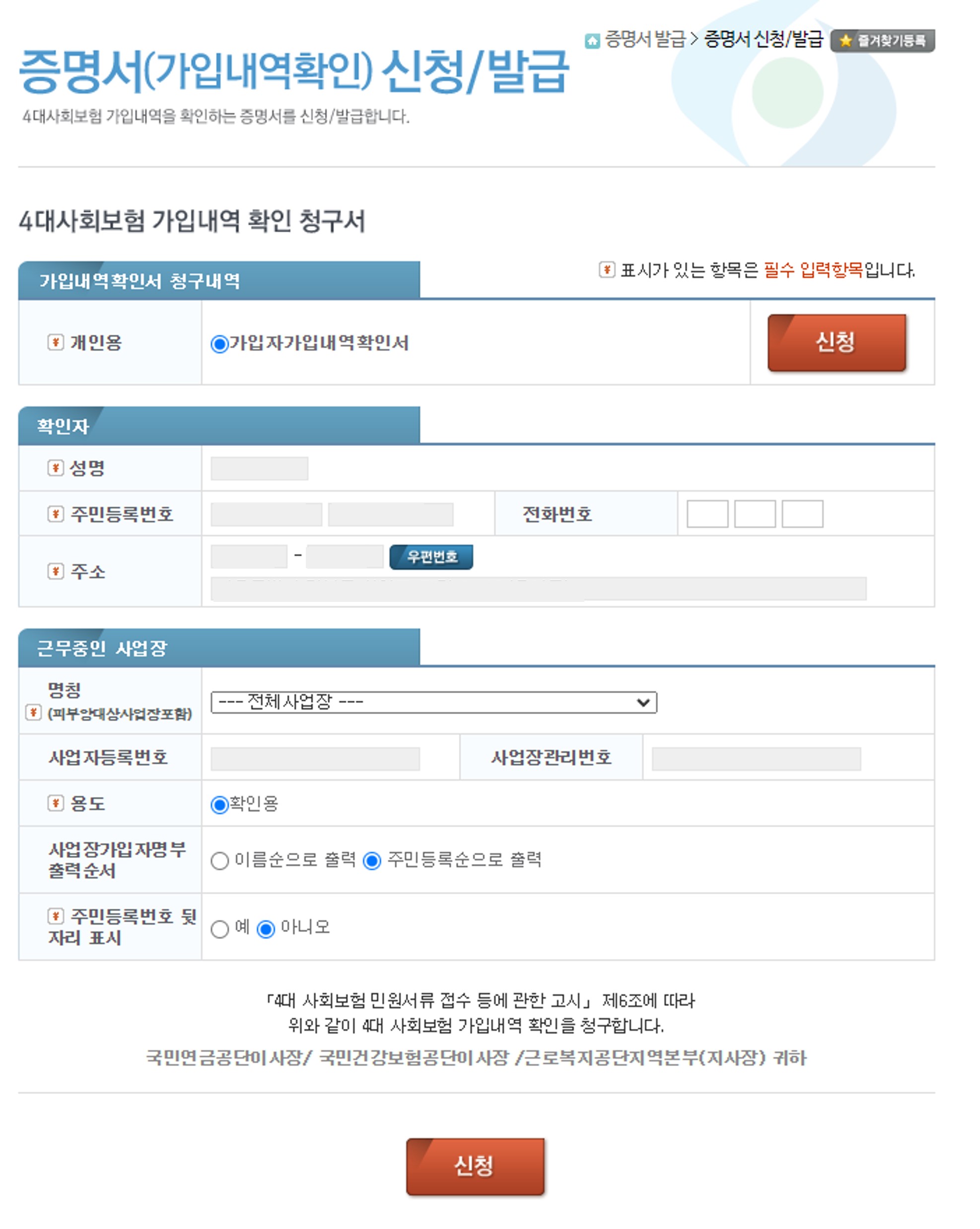 4대보험 가입내역 확인서를 발급 받기 위해서는