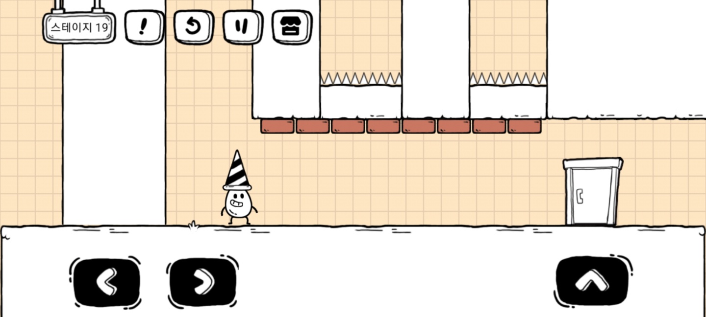 삼각 꼬깔을 드래그해서 계란이 머리에 올려놓아야 한다