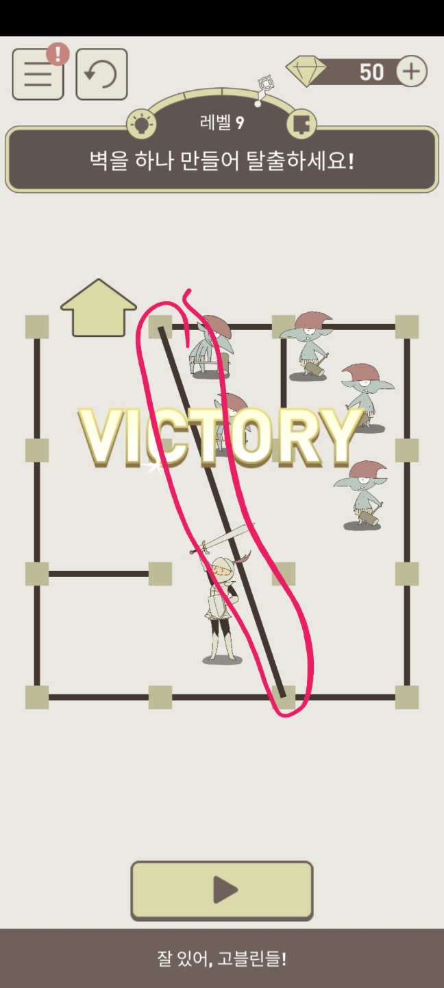 레벨 9 벽을 하나 만들어 탈출하세요!