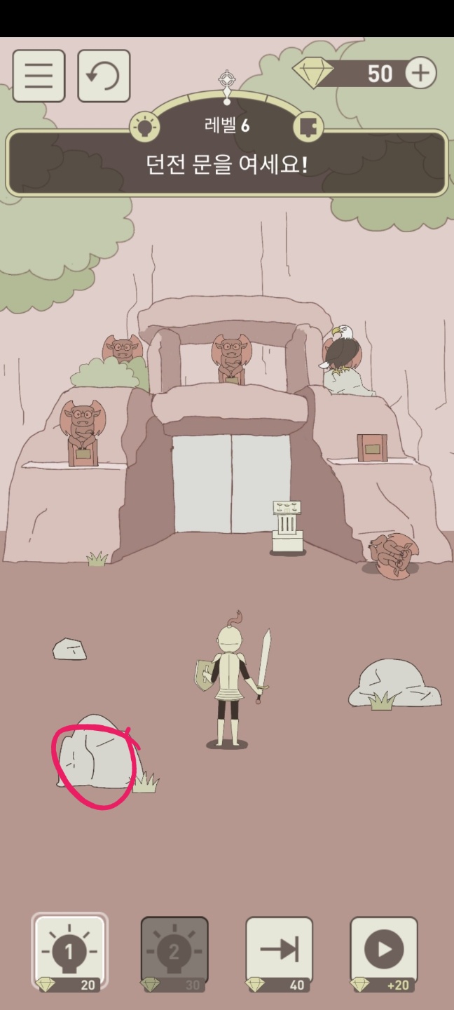 바위를 옆으로 치우면