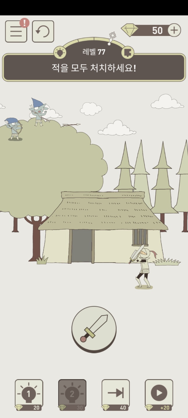 왼쪽 고블린이 쏘는 빠른 화살을 타이밍에 맞춰서 공격해주자