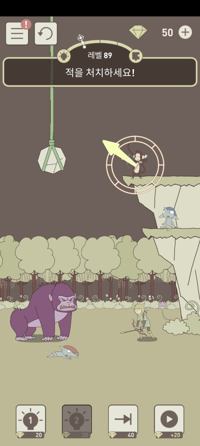 화살을 쏴서 돌을 떨어뜨려주자