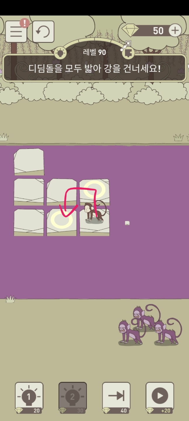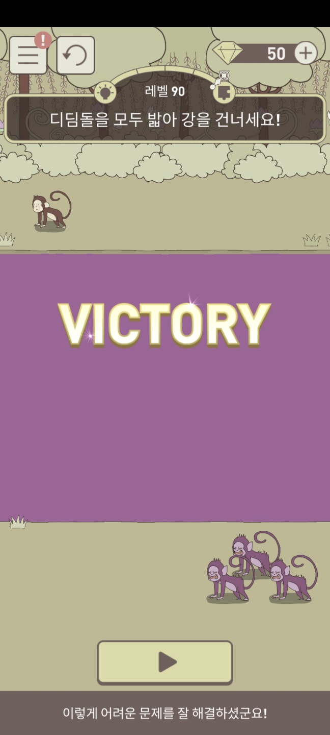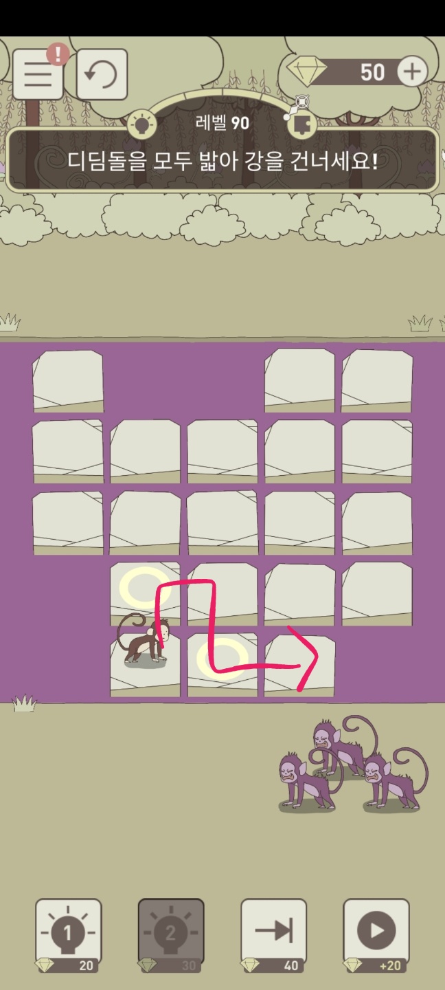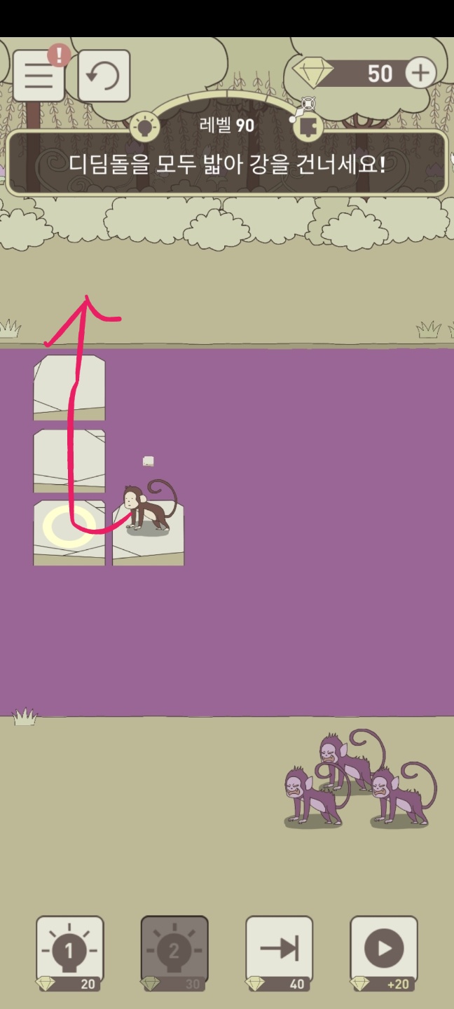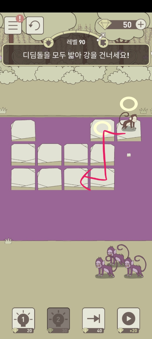 레벨 90 디딤돌을 모두 밟아 강을 건너세요!