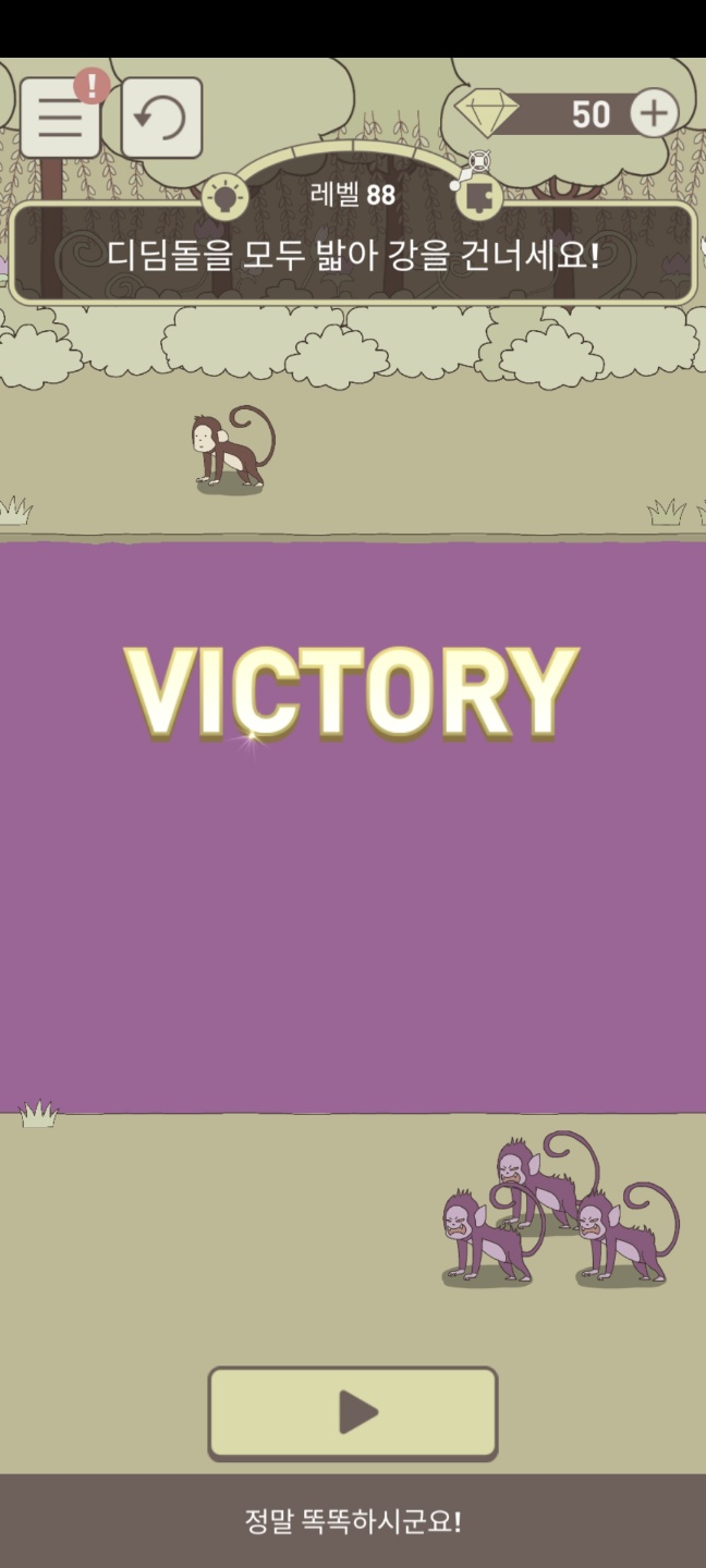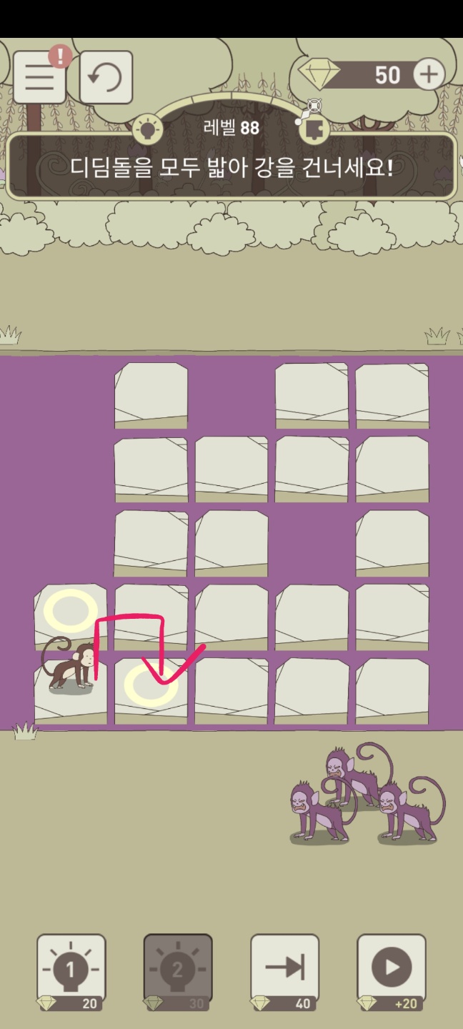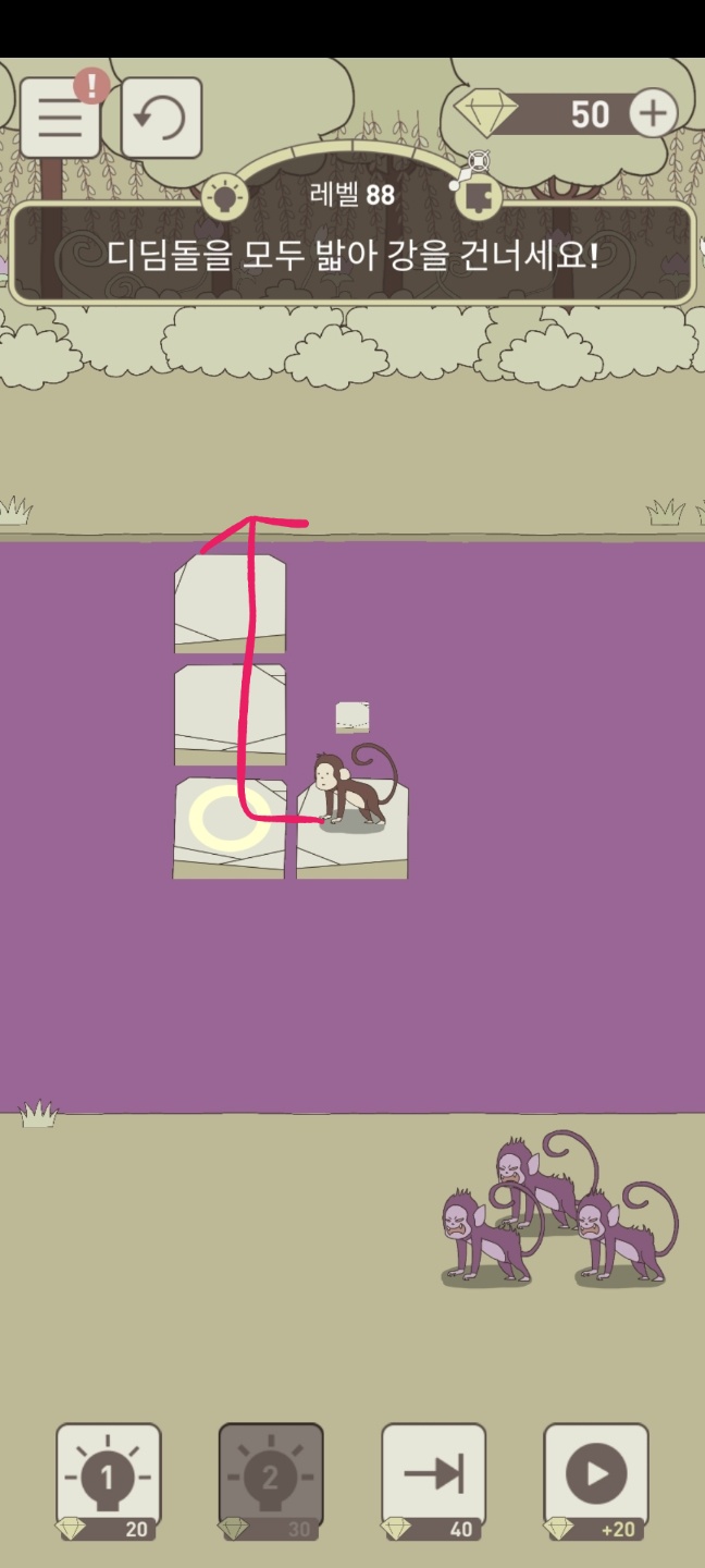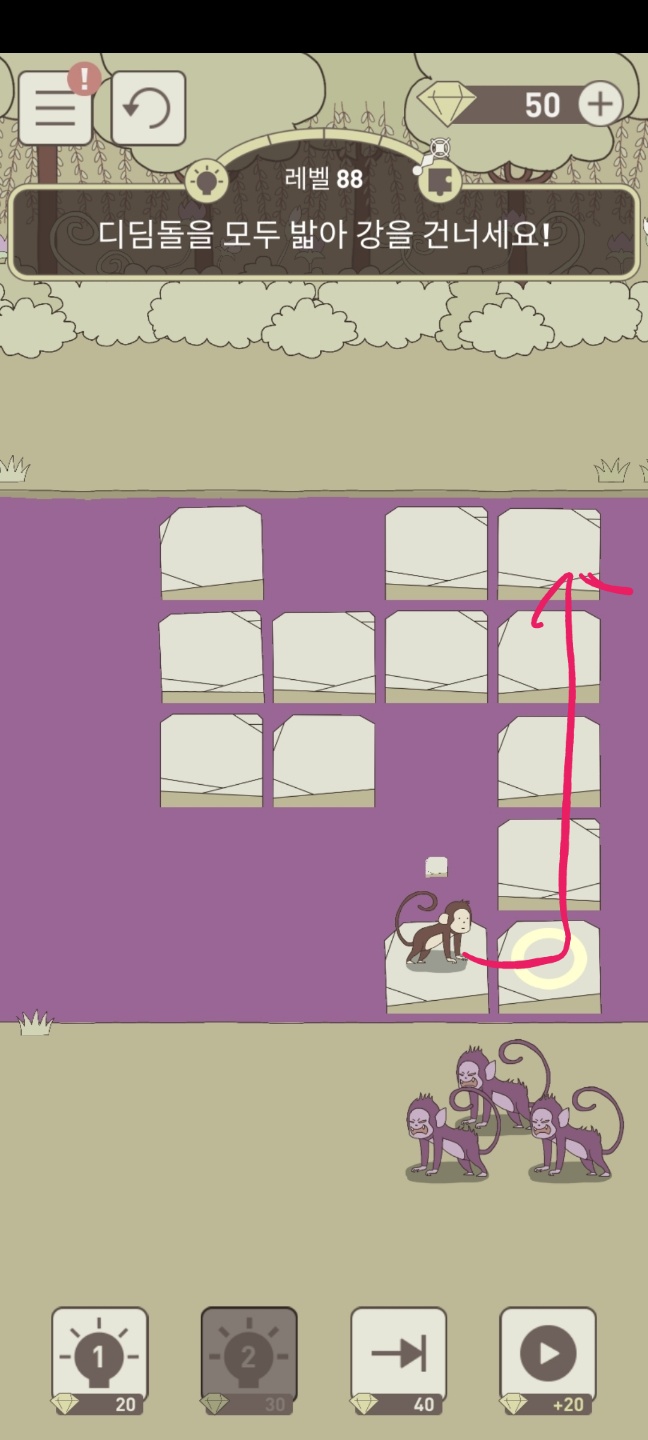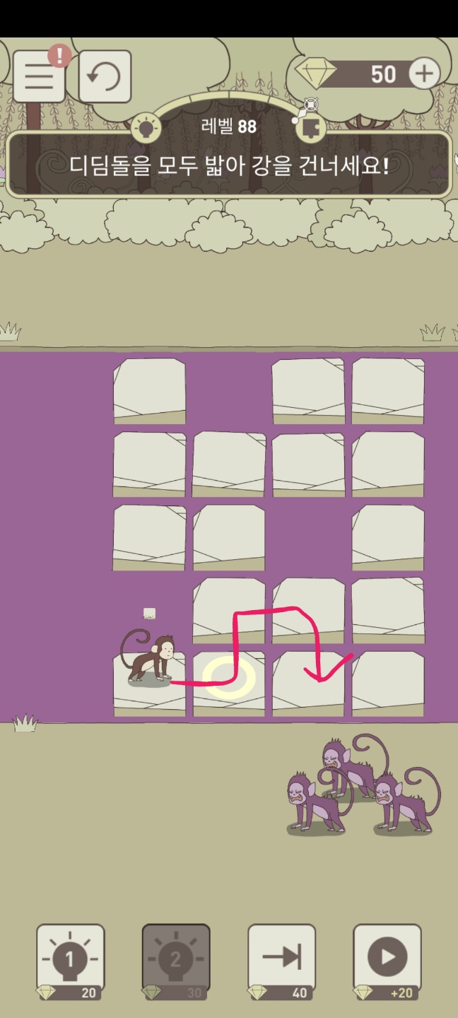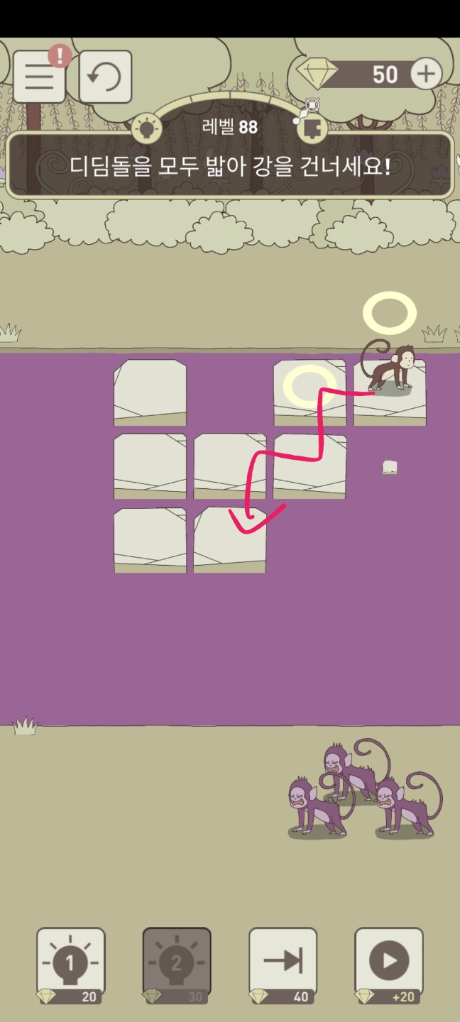 레벨 88 디딤돌을 모두 밟아 강을 건너세요!