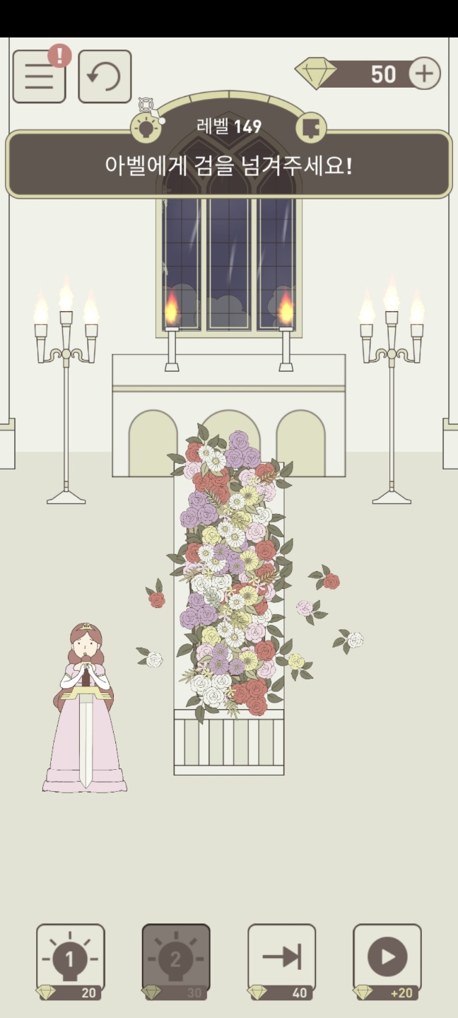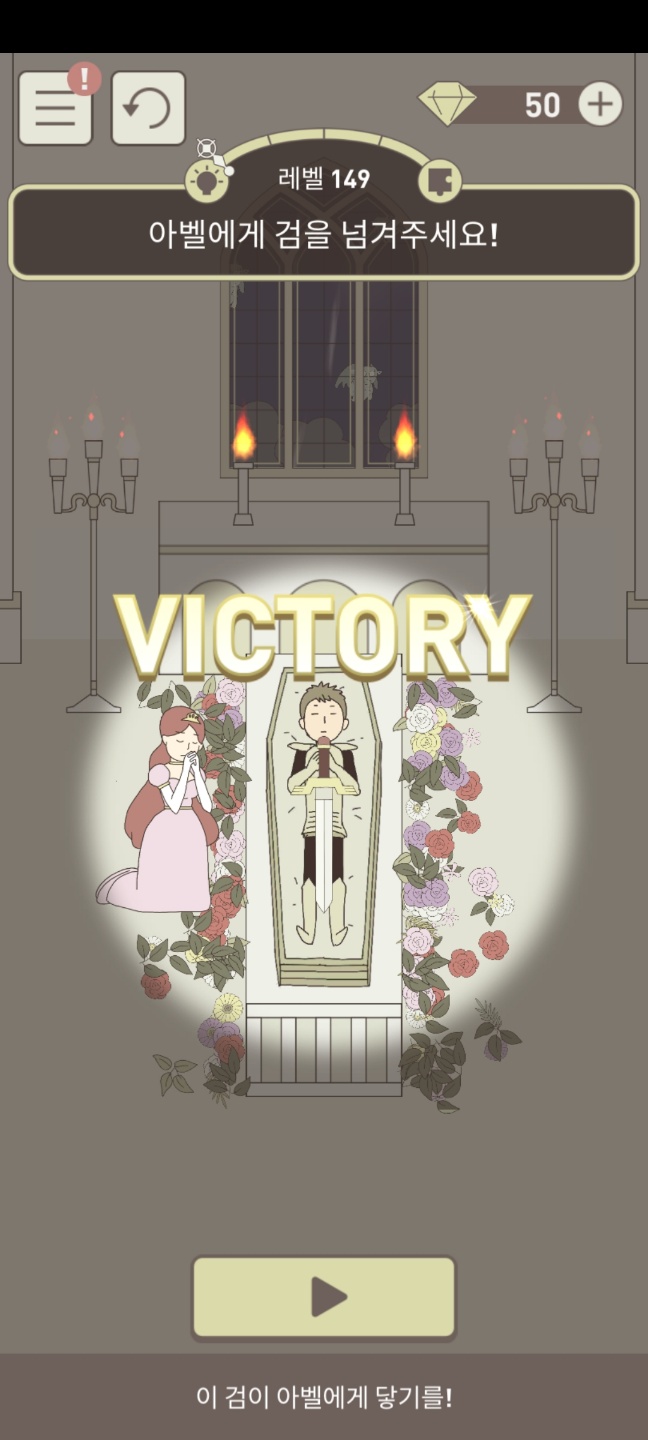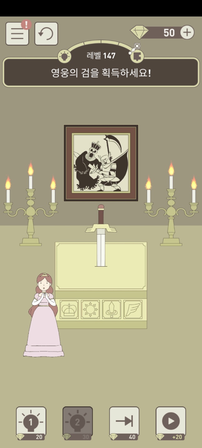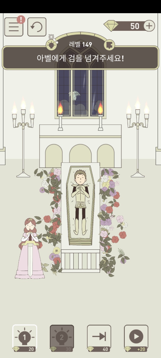 공주가 밀 때 손가락으로 같이 드래그 해서 동상을 옆으로 밀어주자