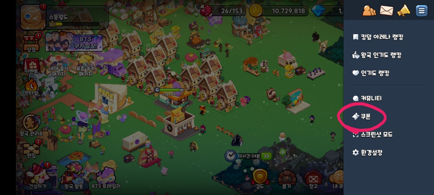 쿠키런 킹덤은 쿠키런에 이어서 RPG 형식으로 자신의 킹덤을 만들고 쿠키들을 모아 플레이하는 수집형 게임이다 쿠키런 킹덤은 매달 쿠폰을 뿌리고 있는데 간편하게 등록 해놓고 쿠폰을 받는 방