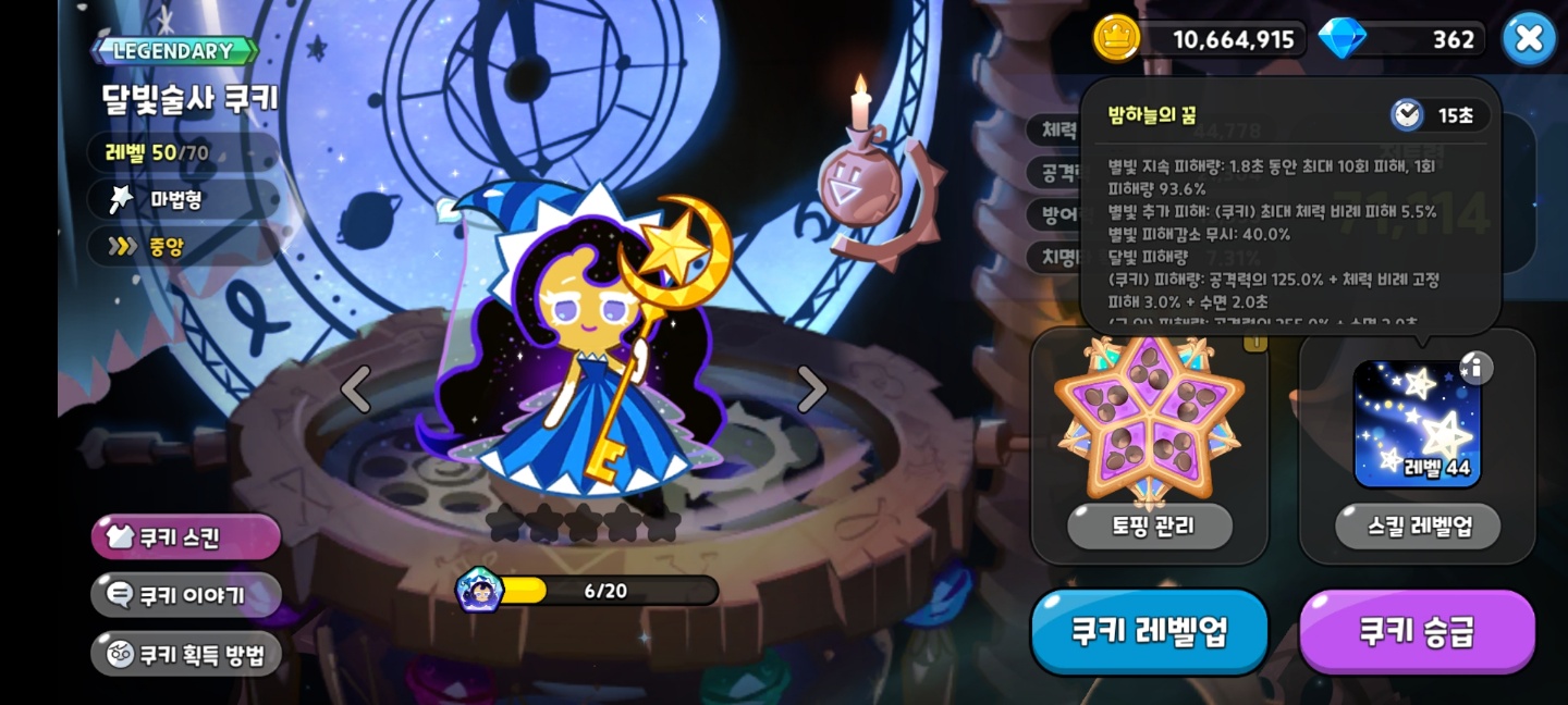 달빛술사 쿠키는 스킬을 쓰면 상대방 최대 체력에 비례해서 피해를 주고