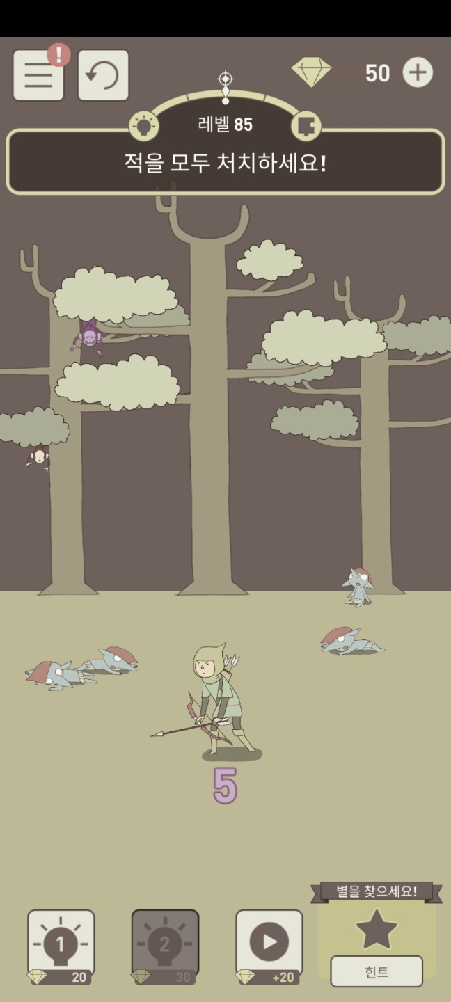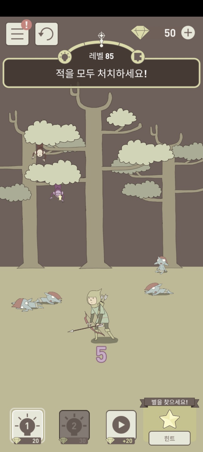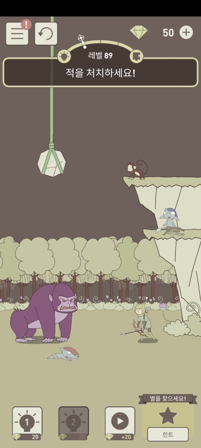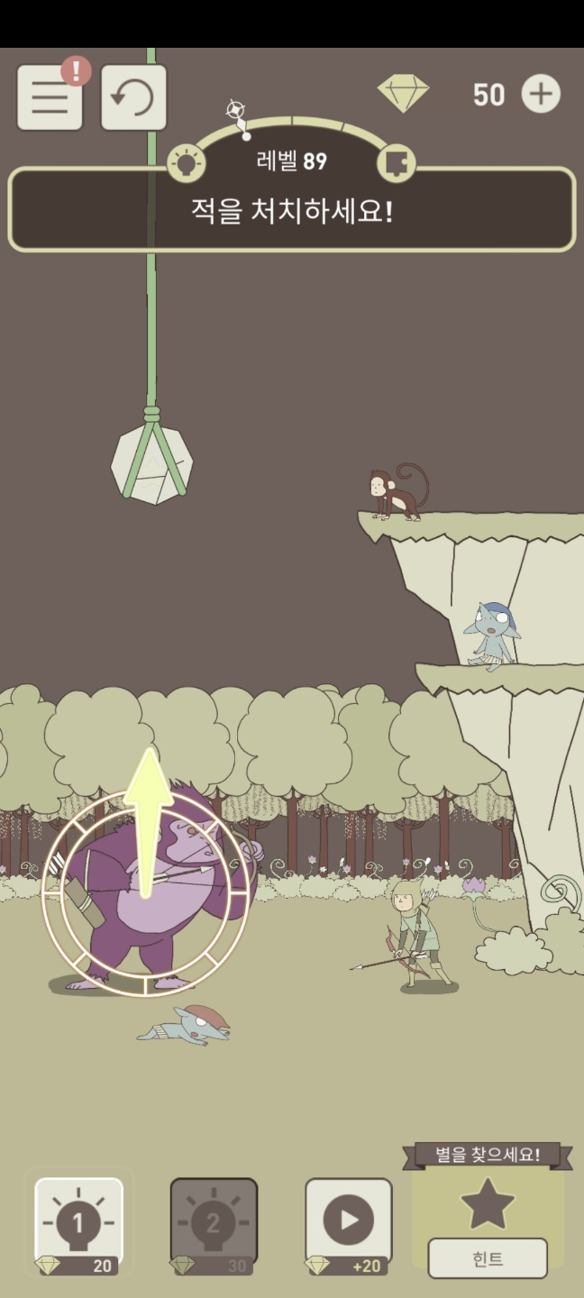 살짝만 흔들어서 화살로 맞춰서 떨어뜨리면 원숭이가 맞아서 스테이지가 클리어되고