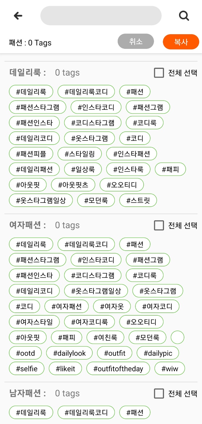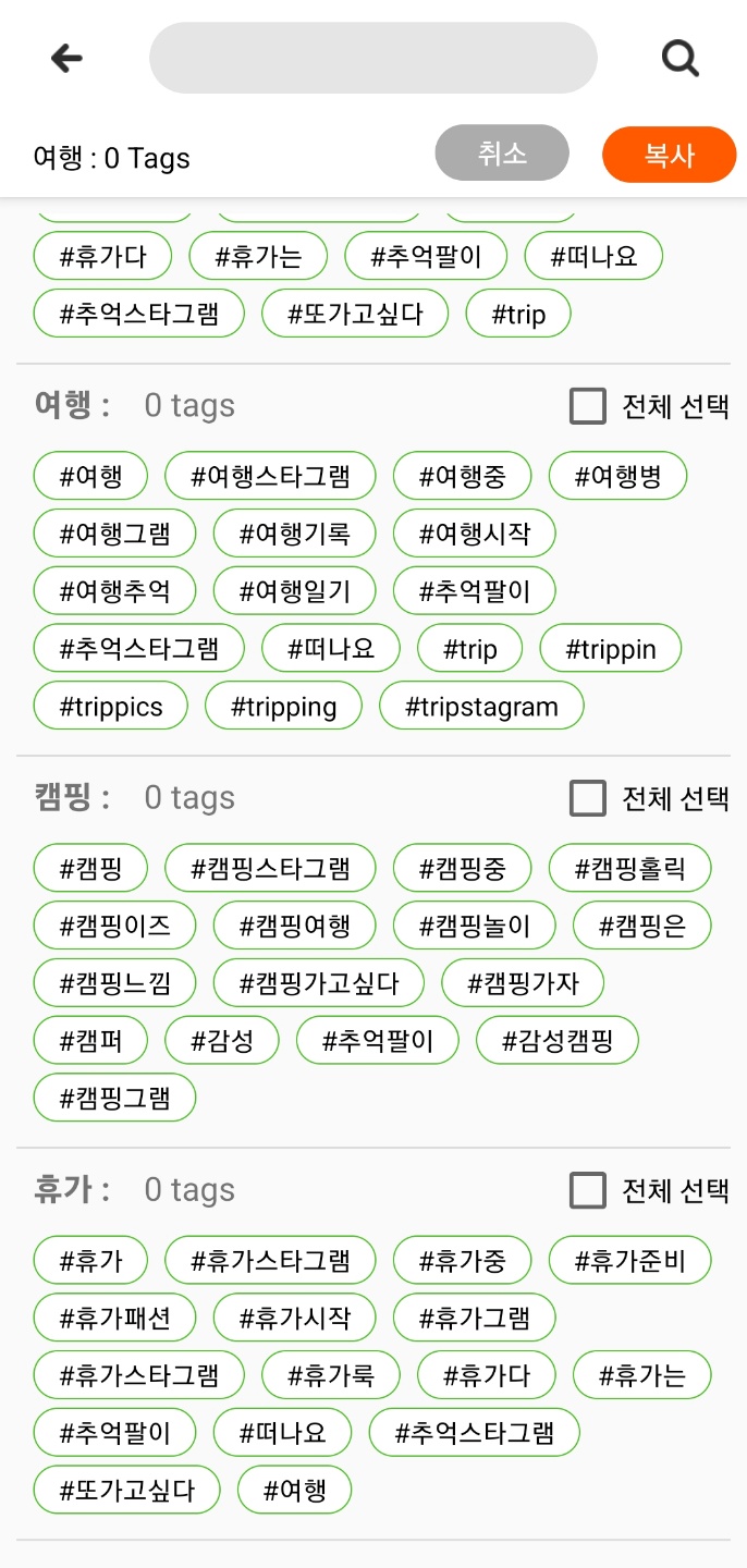 각각의 카테고리를 눌러보면 해당 주제에 맞는 태그들을 추천해준다