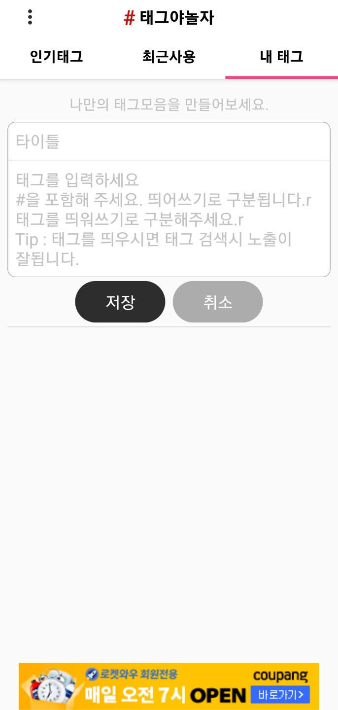 태그 생각하는게 은근 귀찮은데 시간을 완전 단축해주는 느낌 ㅎㅎ
