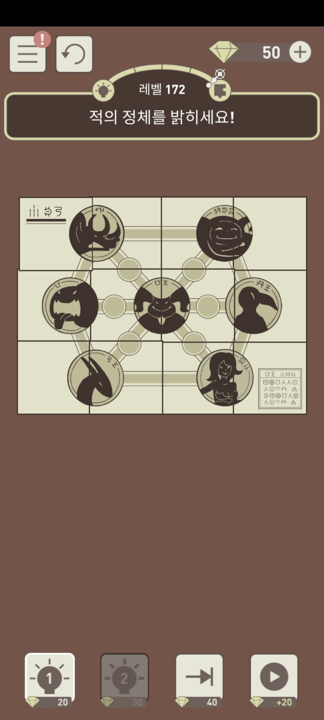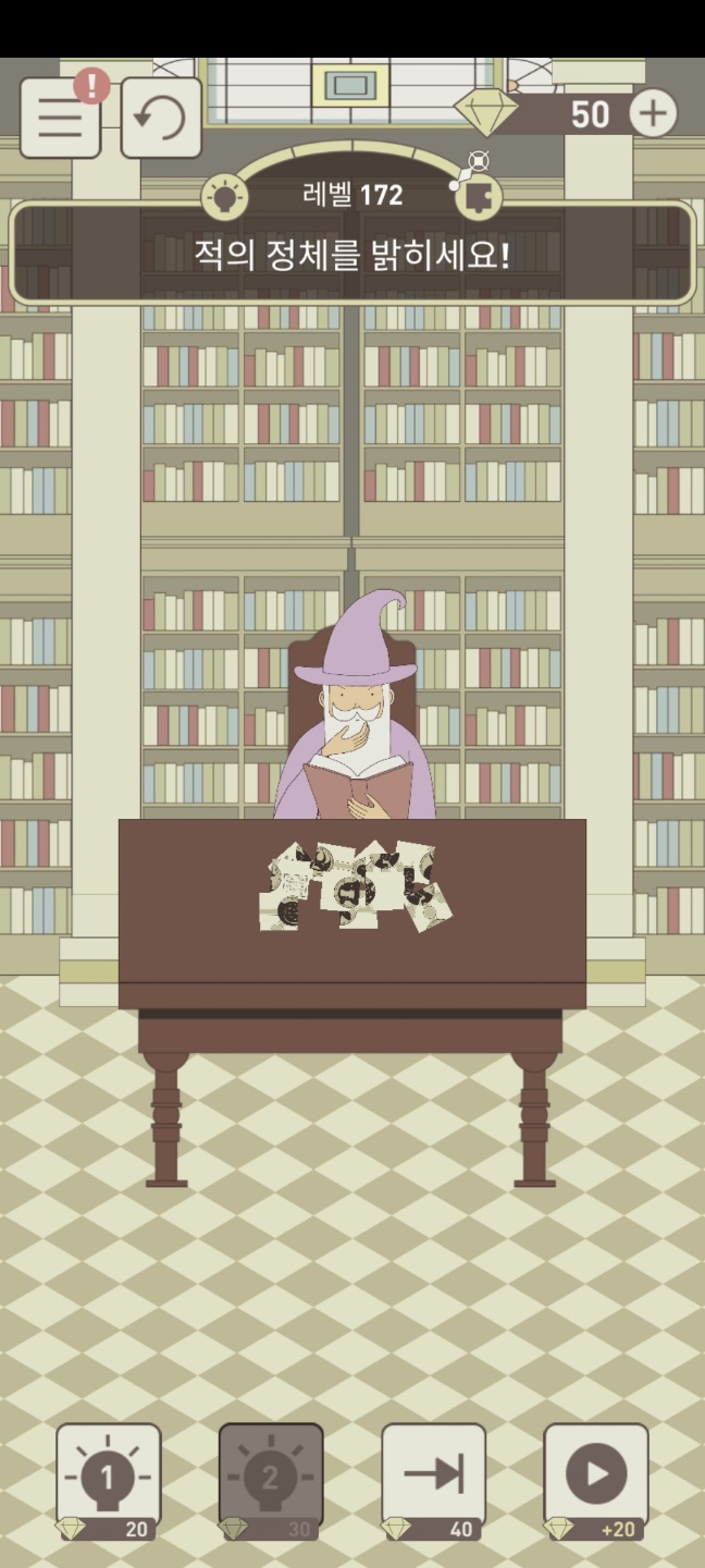 마법사가 퍼즐로 적의 정체를 파악하고 있다