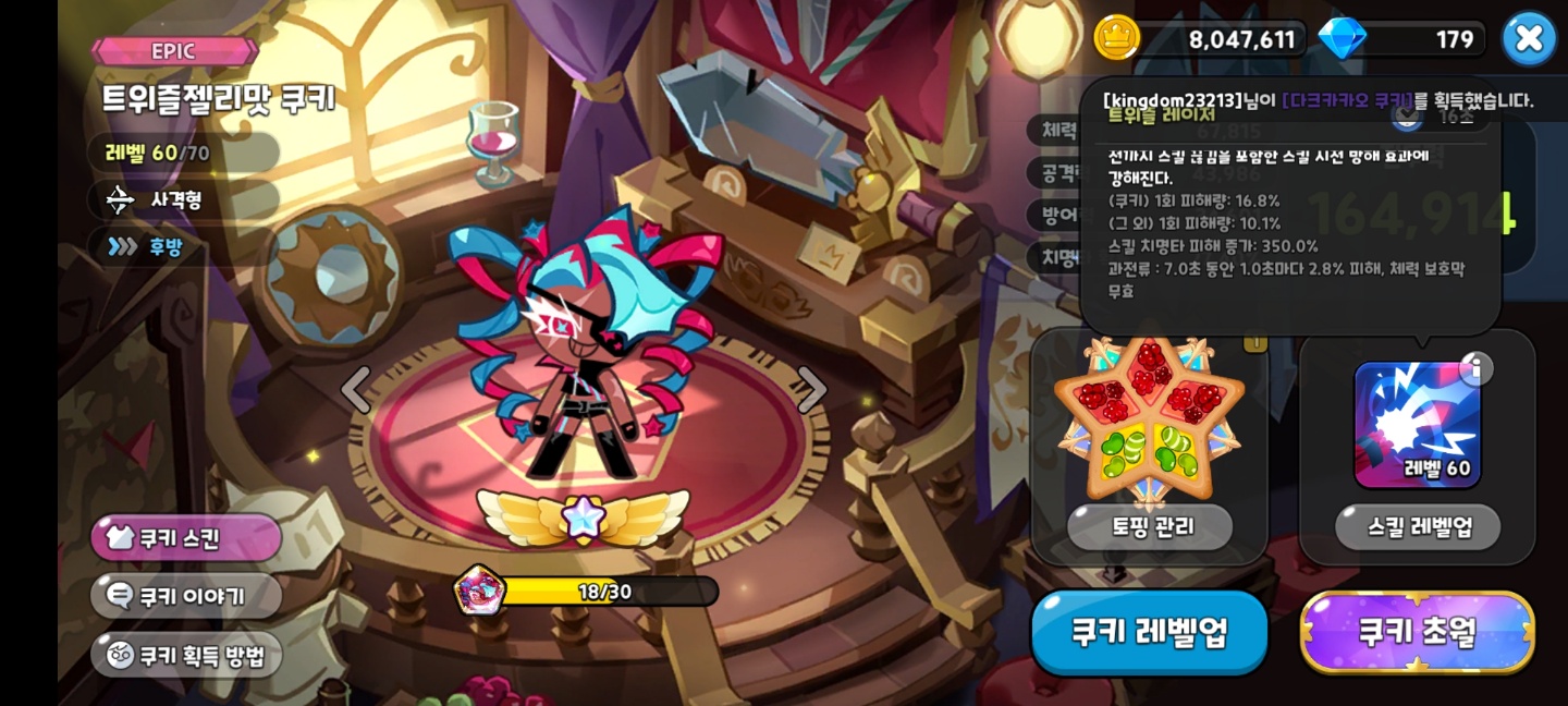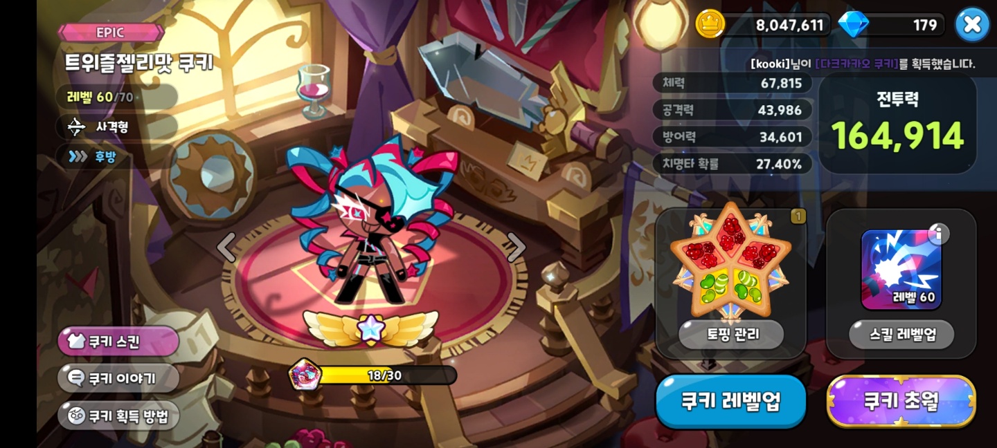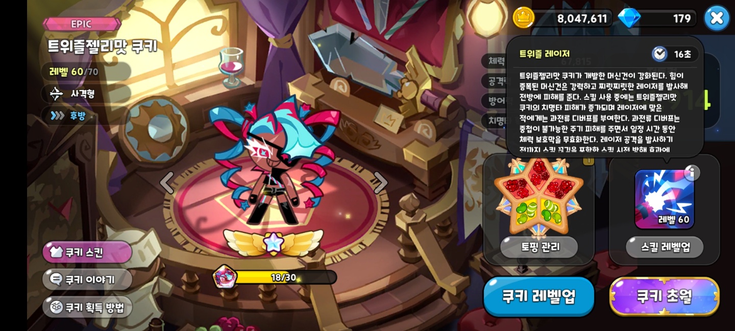 트위즐젤리맛 쿠키는 사격형 포지션으로 배정되어 있다