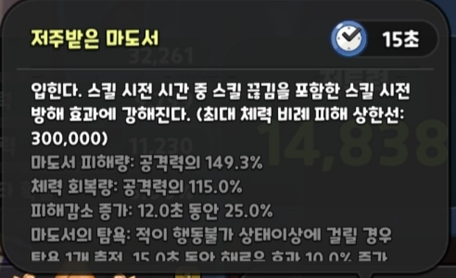 - 피해감소 증가 : 12.0초 동안 25.0%