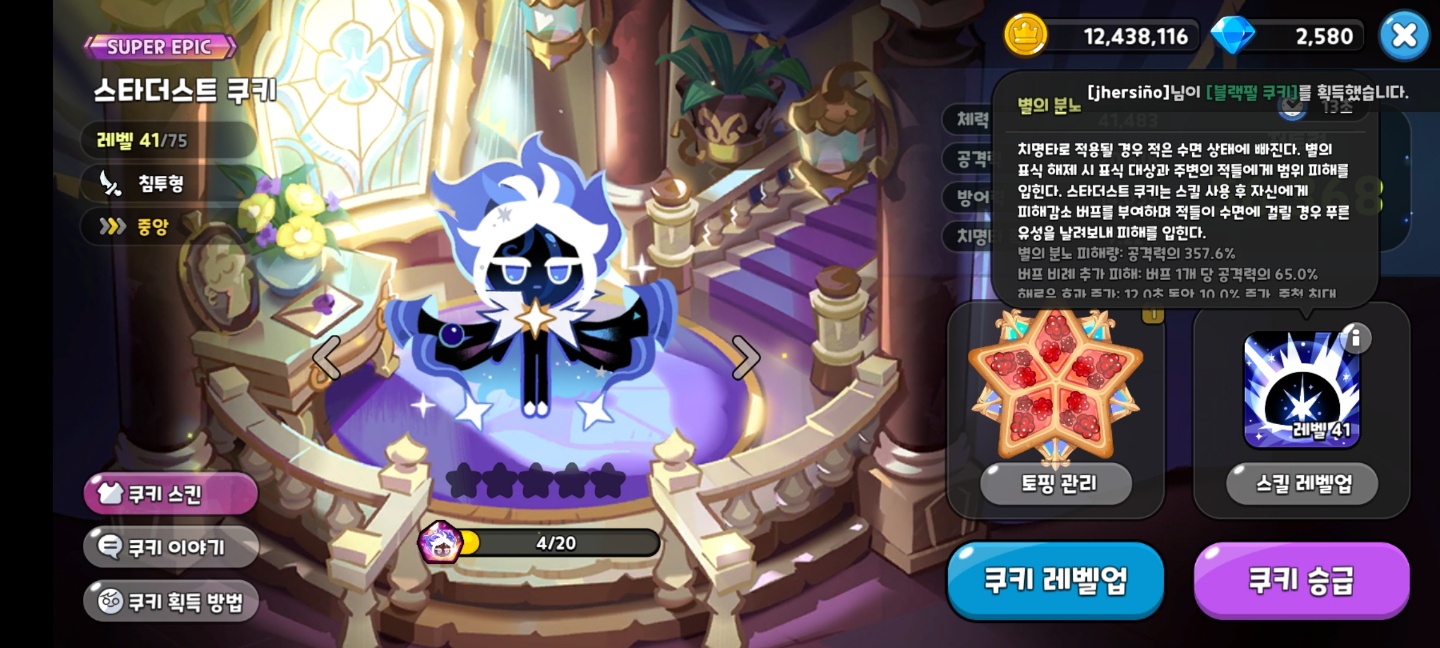 스타더스트 쿠키 스킬은 서리여왕처럼 강력한 피해량을 가지고 있으므로 이 피해량을 극대화 시켜주기 위해서 라즈베리 토핑을 사용하는 것도 효율적으로 보인다