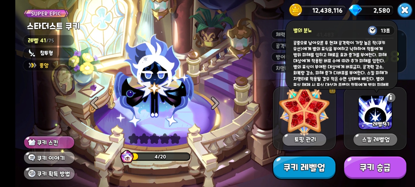 스타더스트 쿠키의 스킬은 강력한 공격력을 가지고 있으면서 동시에 디버프 효과를 가지고 있다