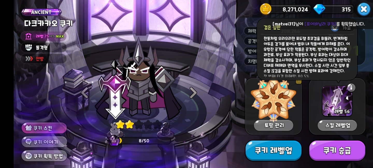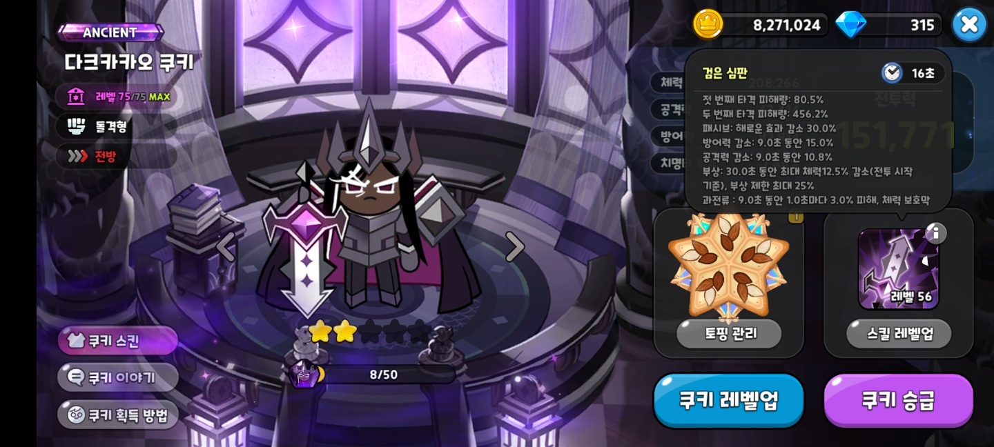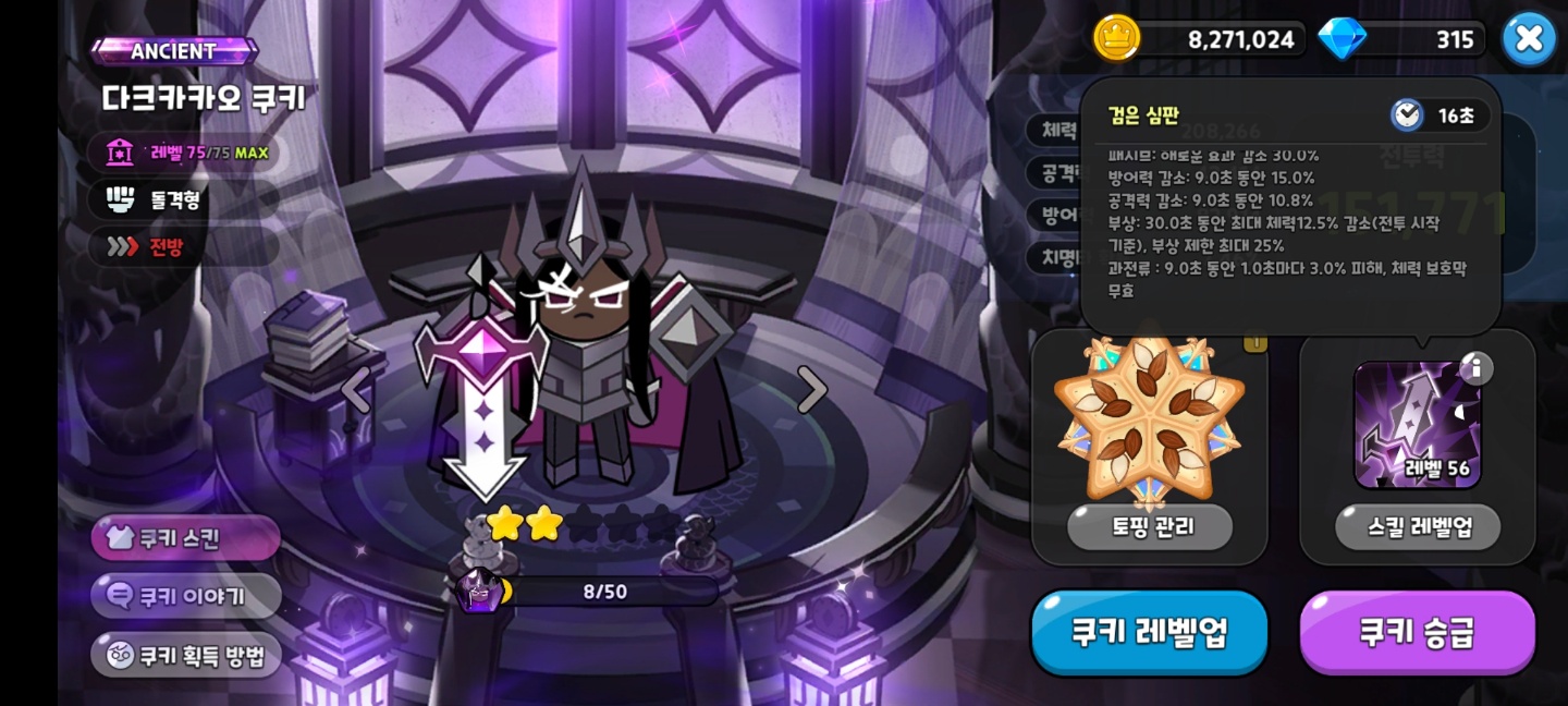 다크카카오 쿠키의 스킬은 상대방의 최대 체력을 감소 시킨다