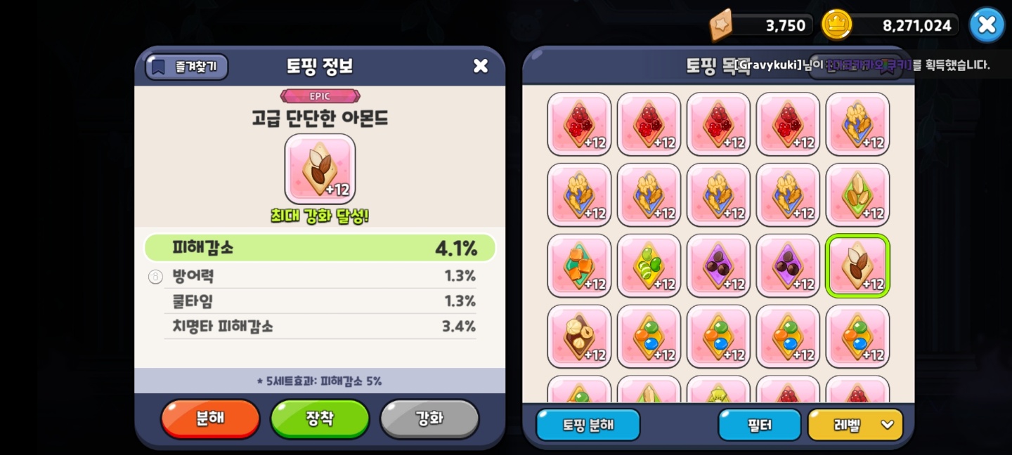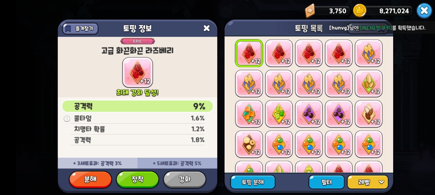 다음으로 라즈베리 토핑으로 공격력을 올려줘도 된다