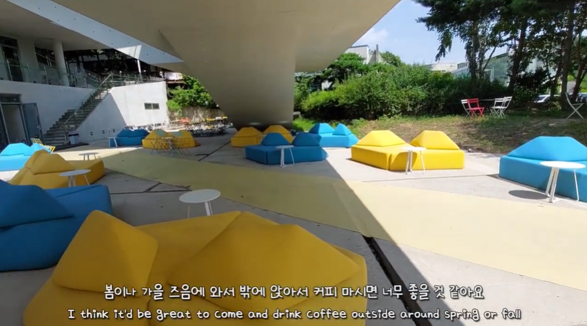 위치에 따라서 특색 있게 의자나 테이블이 배치되어 있다