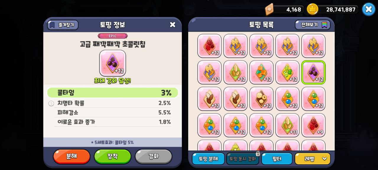 그 외에도 스킬을 자주 사용하려면 초콜릿칩을 사용할 수 있다