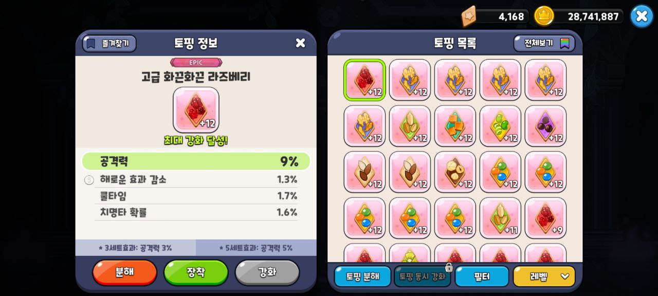 | [쿠키런 킹덤] 쿠킹덤 타르트타탕맛 쿠키 토핑 공략 (0) | 2023.06.18 |