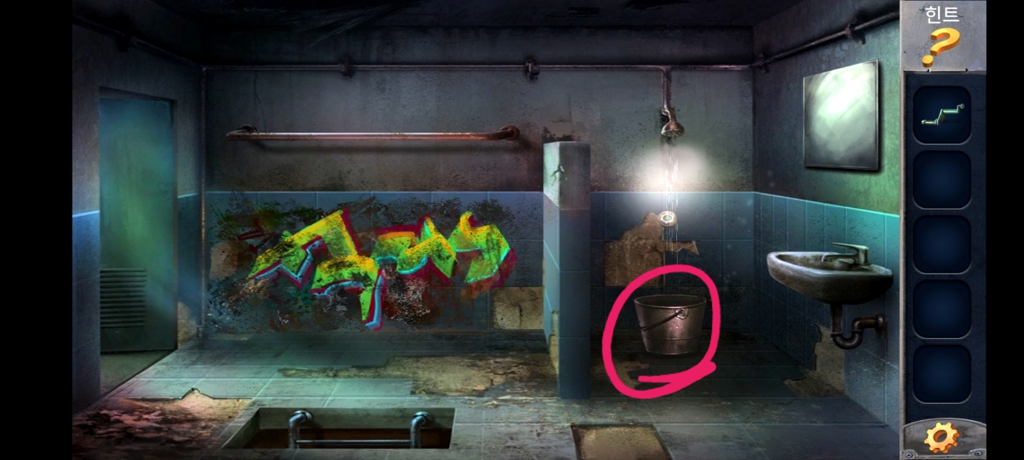 바닥에 양동이를 주워주고