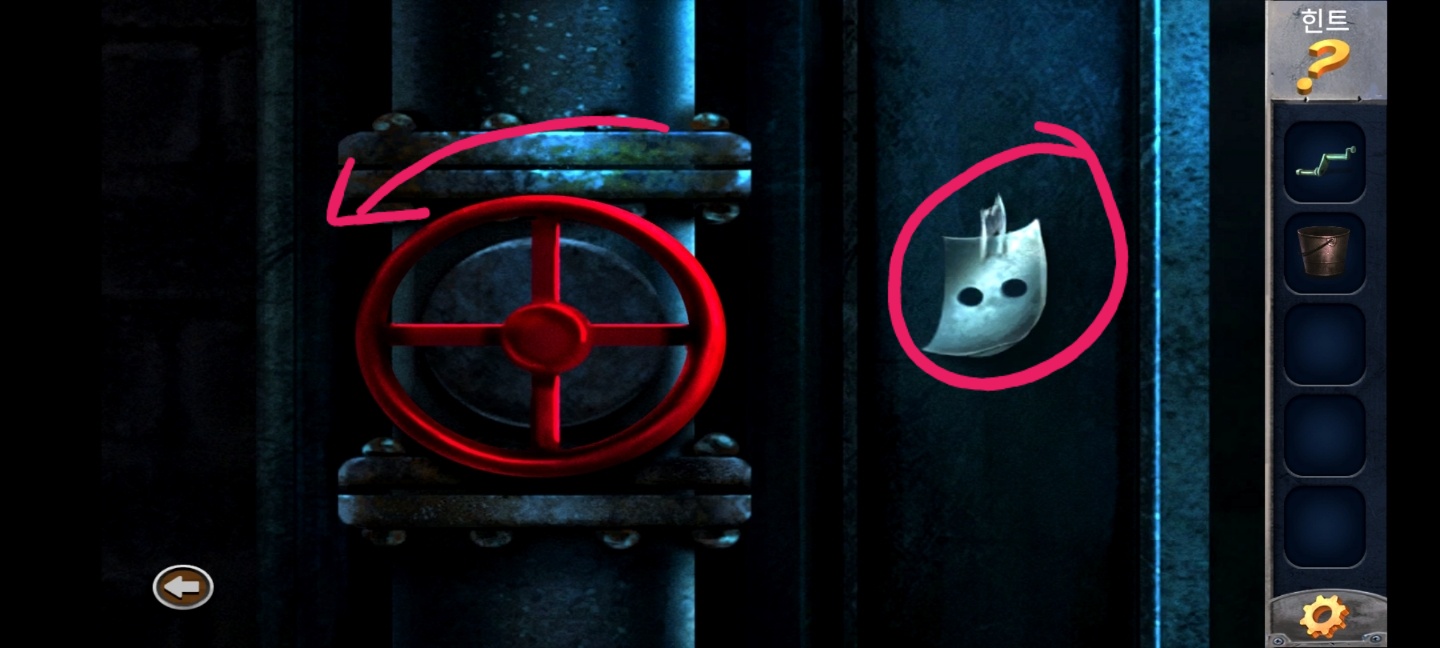손잡이를 넣어 돌려주면 문이 열리면서 탈출!