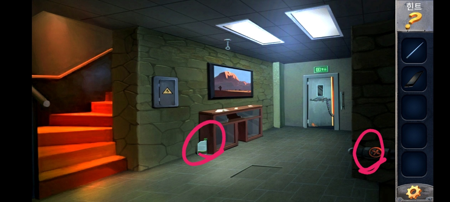 다시 계단으로 내려와서 염산으로 쇠사슬을 녹여주고