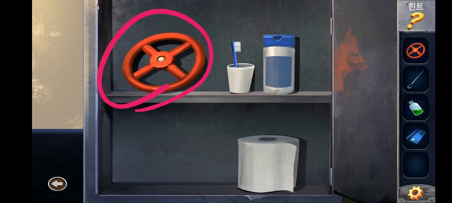 세면대에 있는 카드에 진흙 제거제를 뿌려서 카드를 얻고
