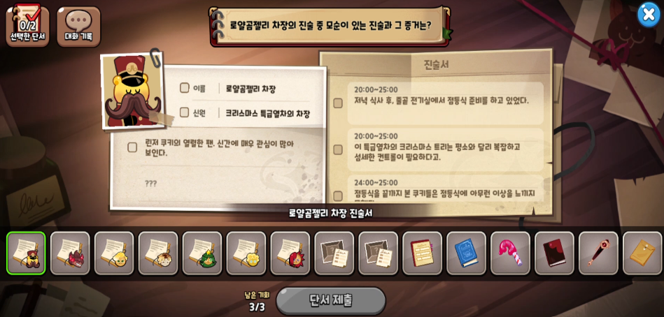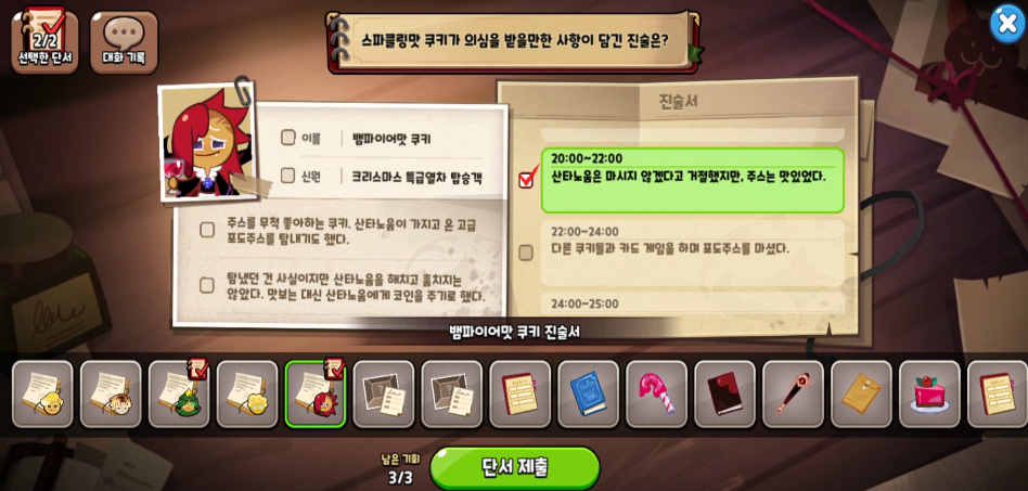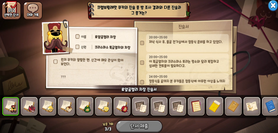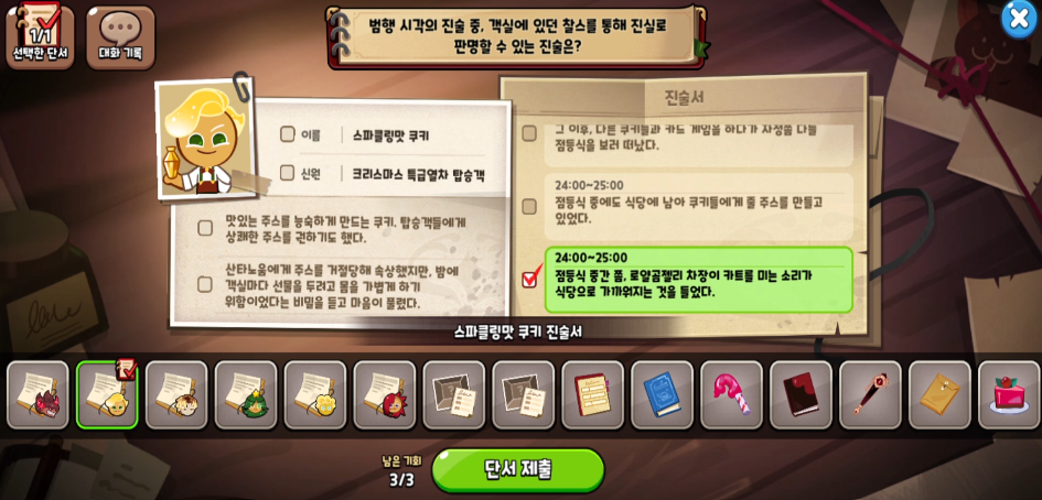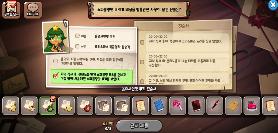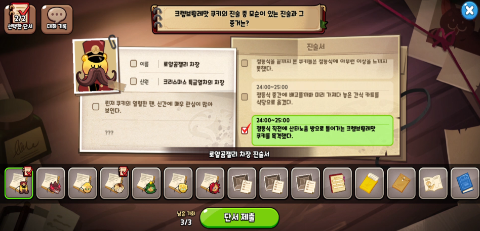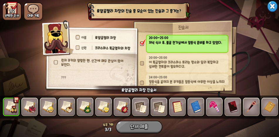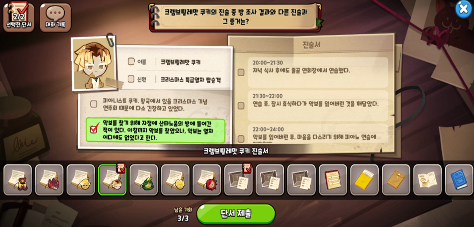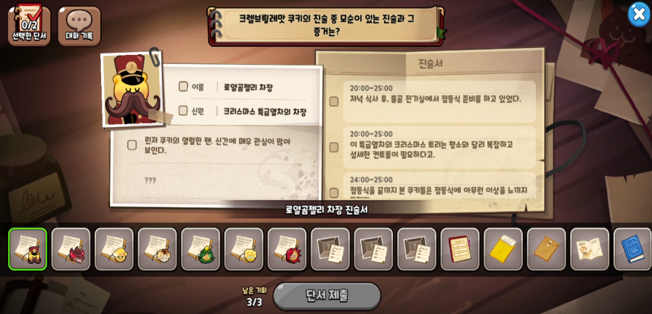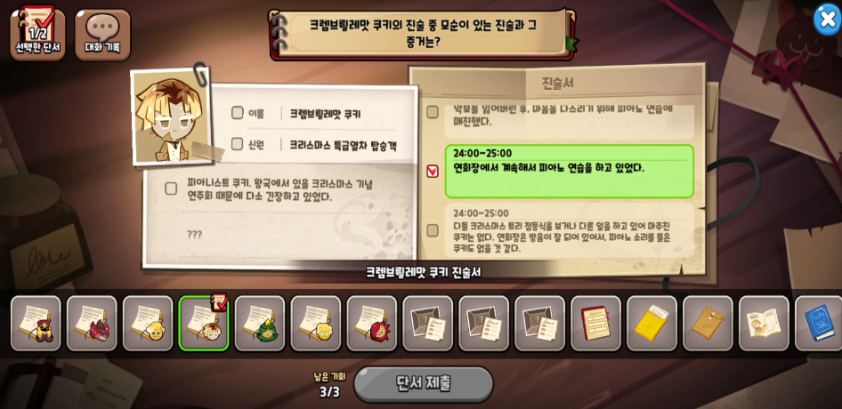 크렘브륄레맛 쿠키의 진술 중 모순이 있는 진술과 그 증거를 찾아야 한다