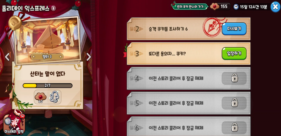 | [쿠키런 킹덤] 홀리데이 익스프레스 챕터 5 공략 (0) | 2023.12.24 |