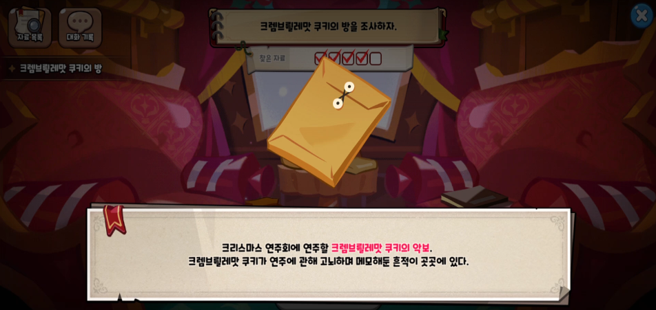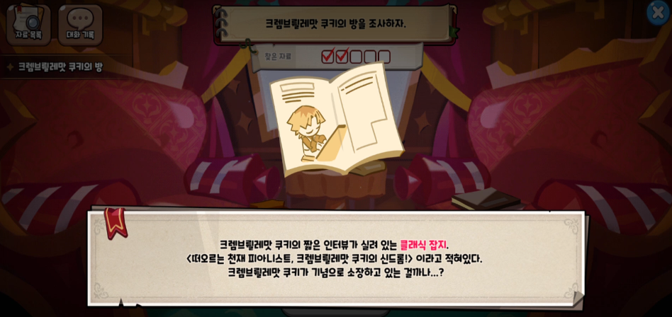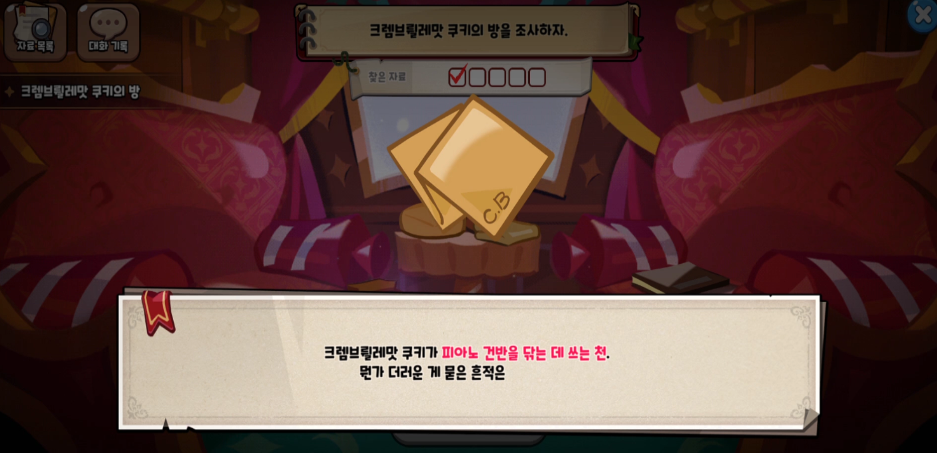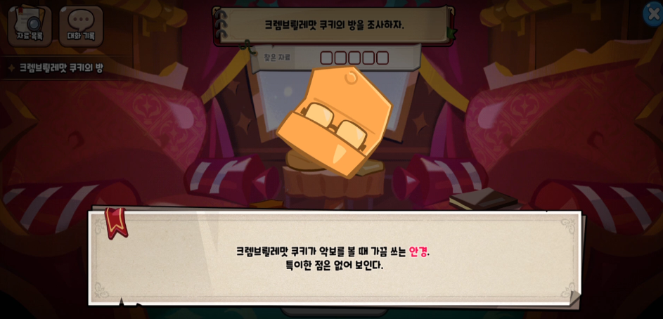크렘브륄레맛 쿠키의 방을 조사해야 한다