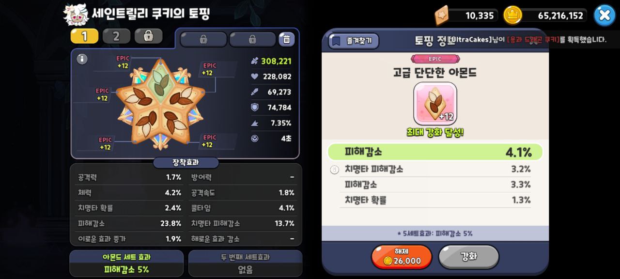 아몬드 토핑으로 피해감소를 올려주는 것이 좋아 보인다