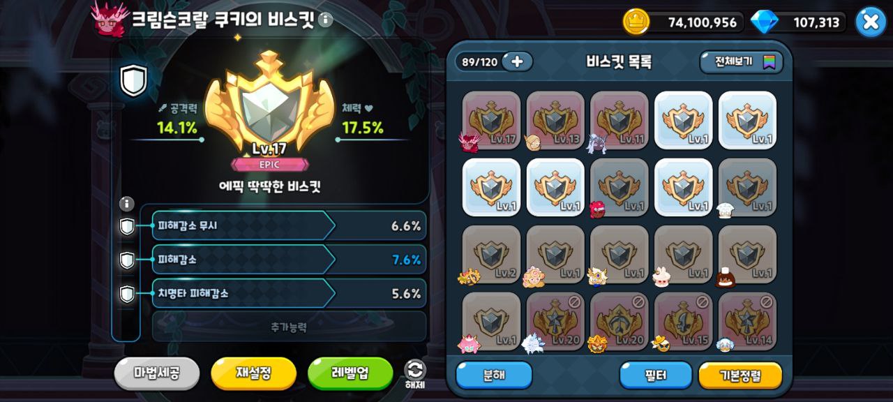 크림슨코랄 쿠키는 슈퍼에픽 등급 방어형으로 전방 포지션이다