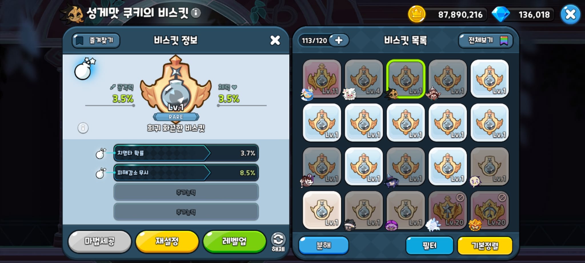 비스킷이 많이 없어서 레어 등급으로 사용했는데
