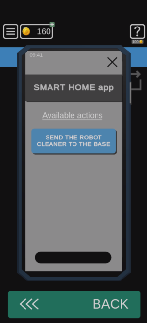 SEND THE ROBOT CLEANER TO THE BASE라는 버튼을 눌러서