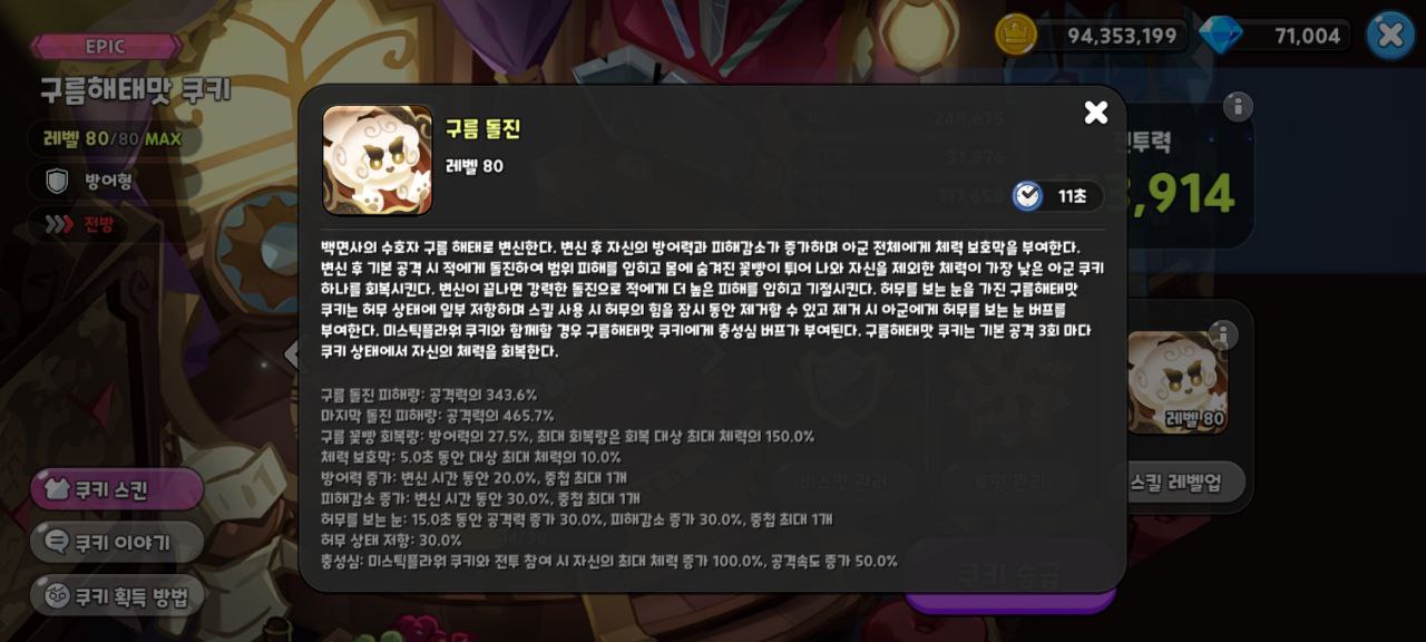 - 구름 돌진 피해량 : 공격력의 343.6%