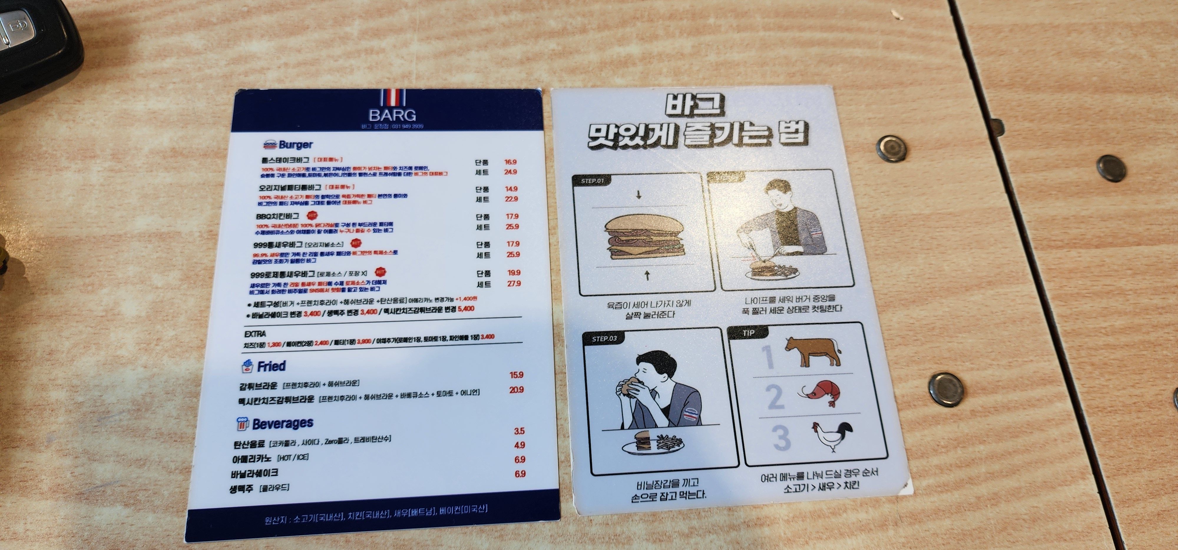 원자재 표시와 바그 버거를 맛있게 즐기는 법도 안내 되어 있다