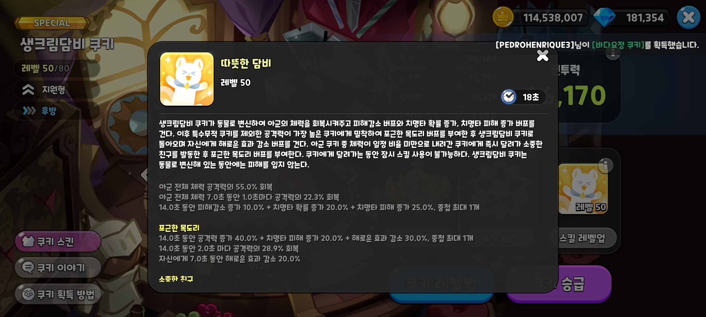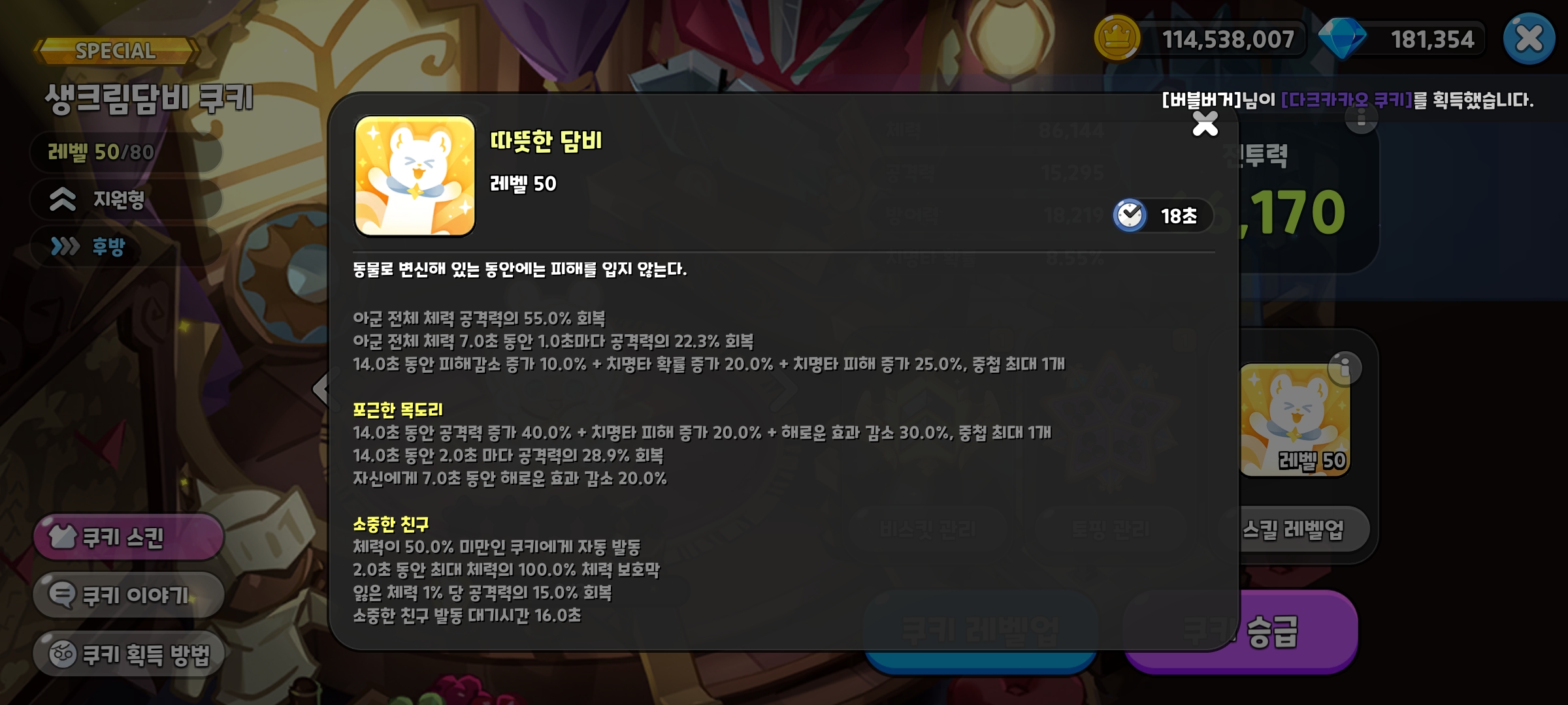 생크림담비 쿠키는 회복형이 아닌 지원형 쿠키이다