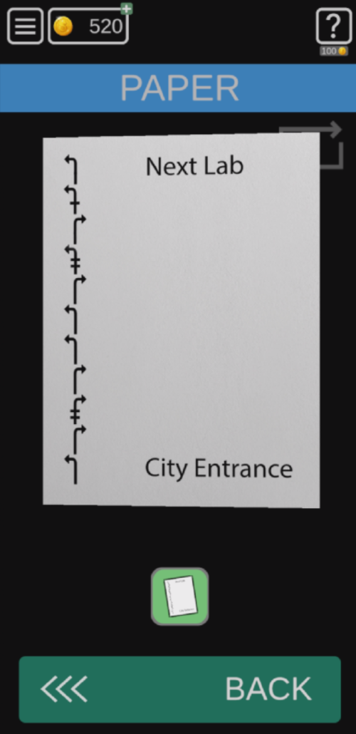 종이를 보면 밑에 City Entrance 부터 Next Lab까지 가는 길이 나와 있다
