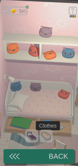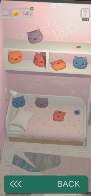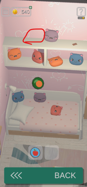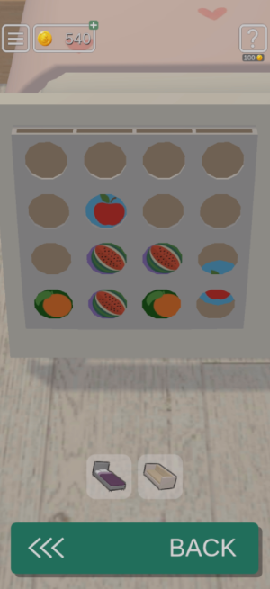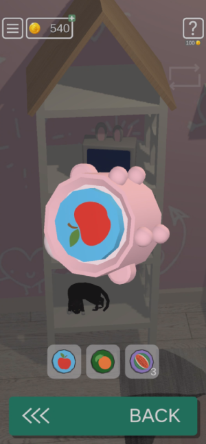 침대 위에 인형을 눌러서 과일 조각 하나를 얻어주고
