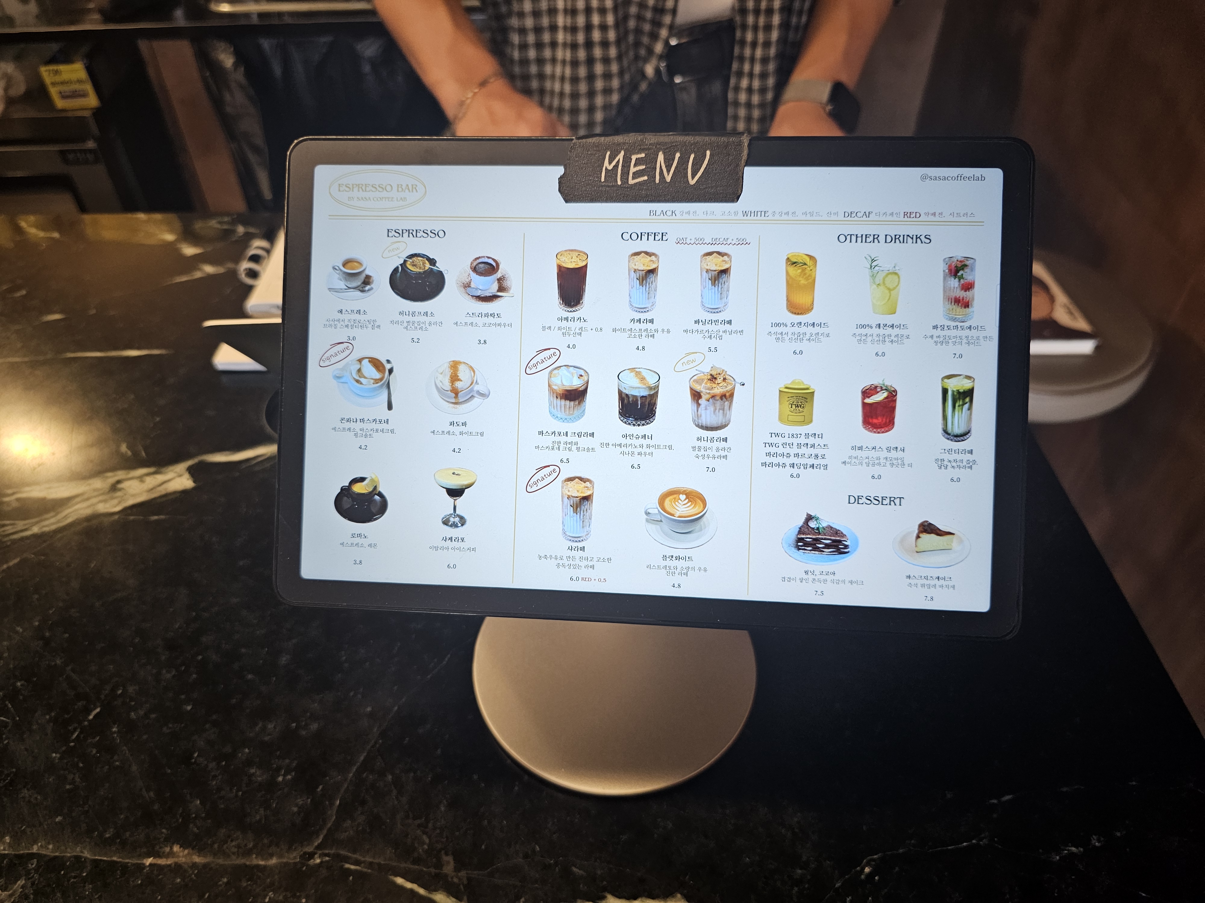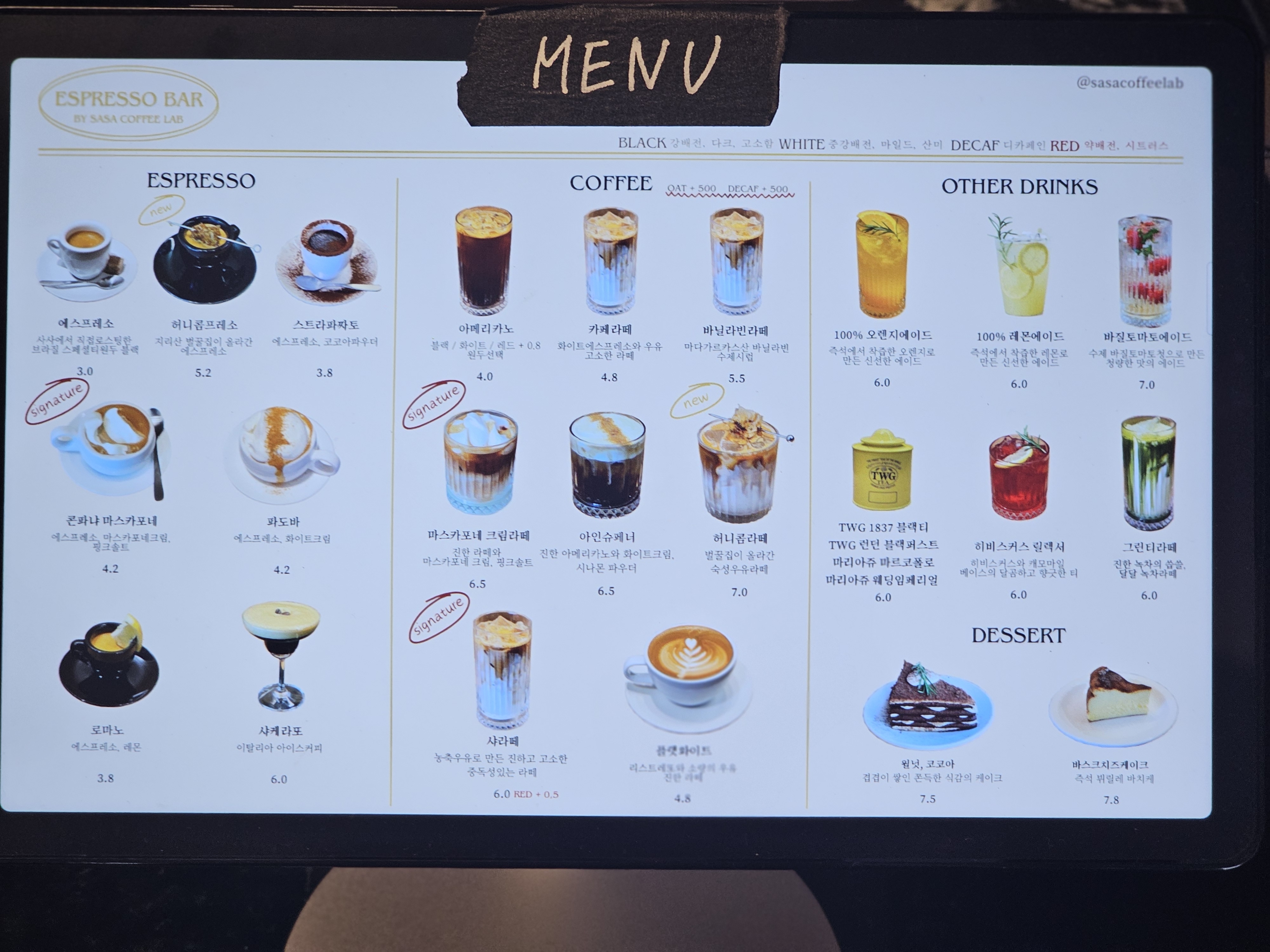 카운터에 요렇게 메뉴판이 귀엽게 구비되어 있다