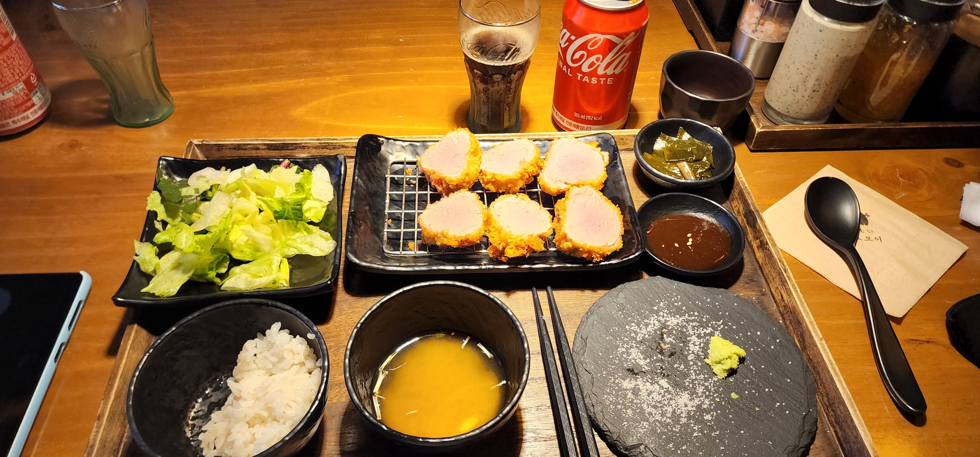 돈카츠도 주문 후에 튀겨서 내주시는 거라 바삭 바삭 소리가 나면서
