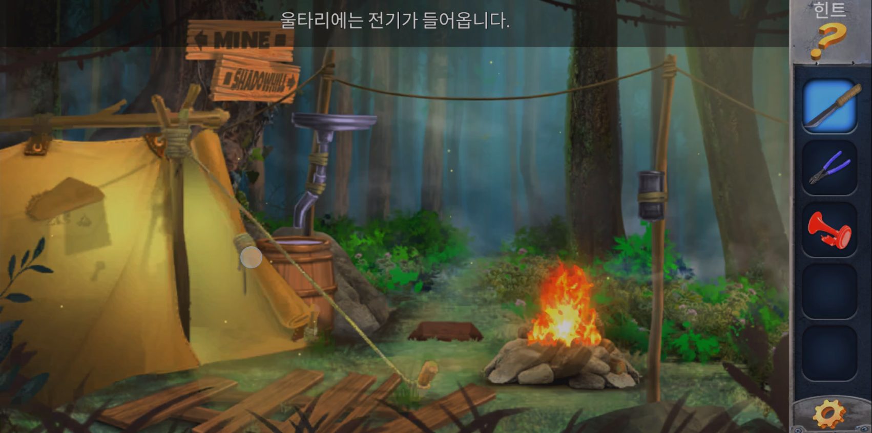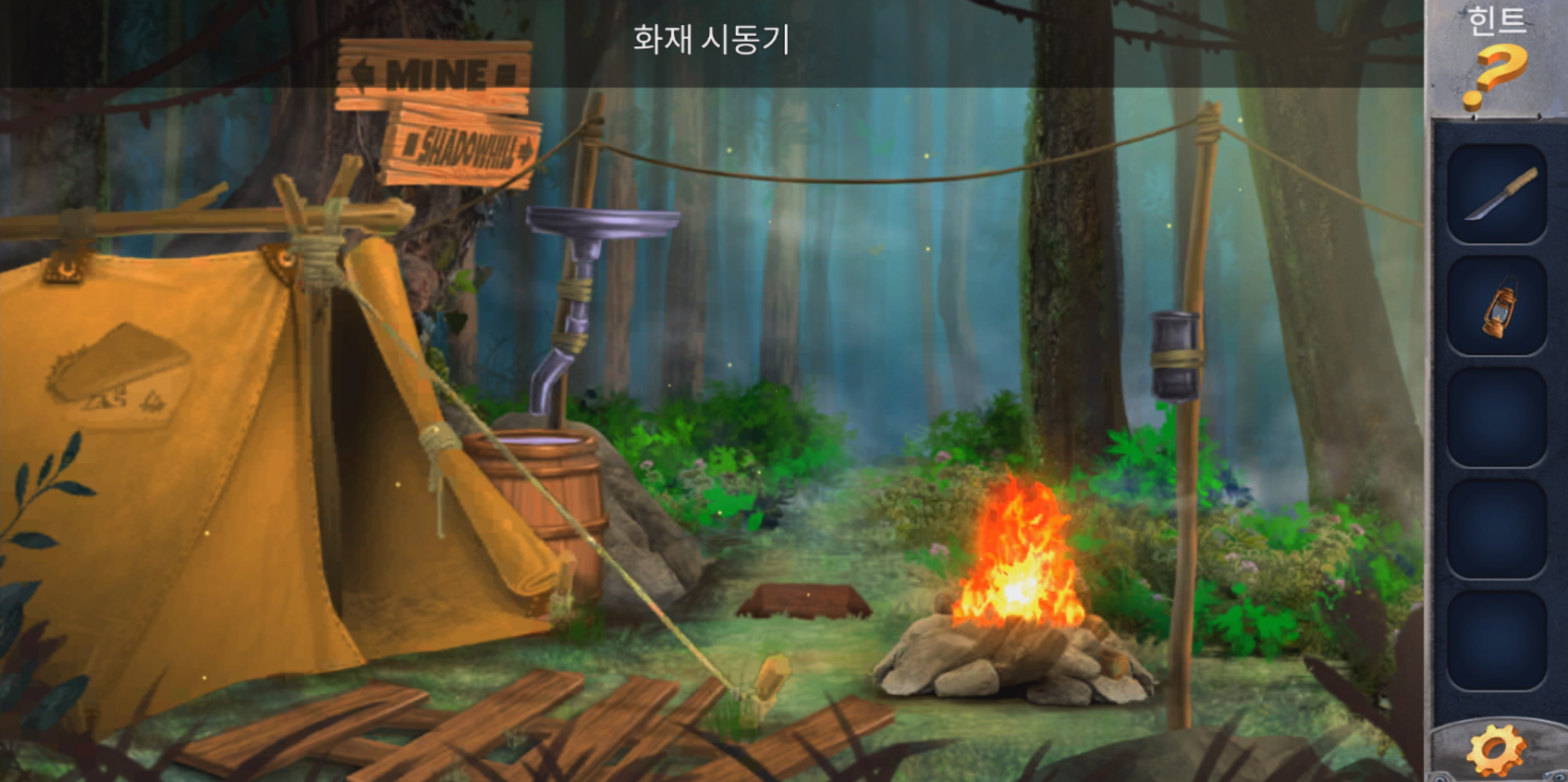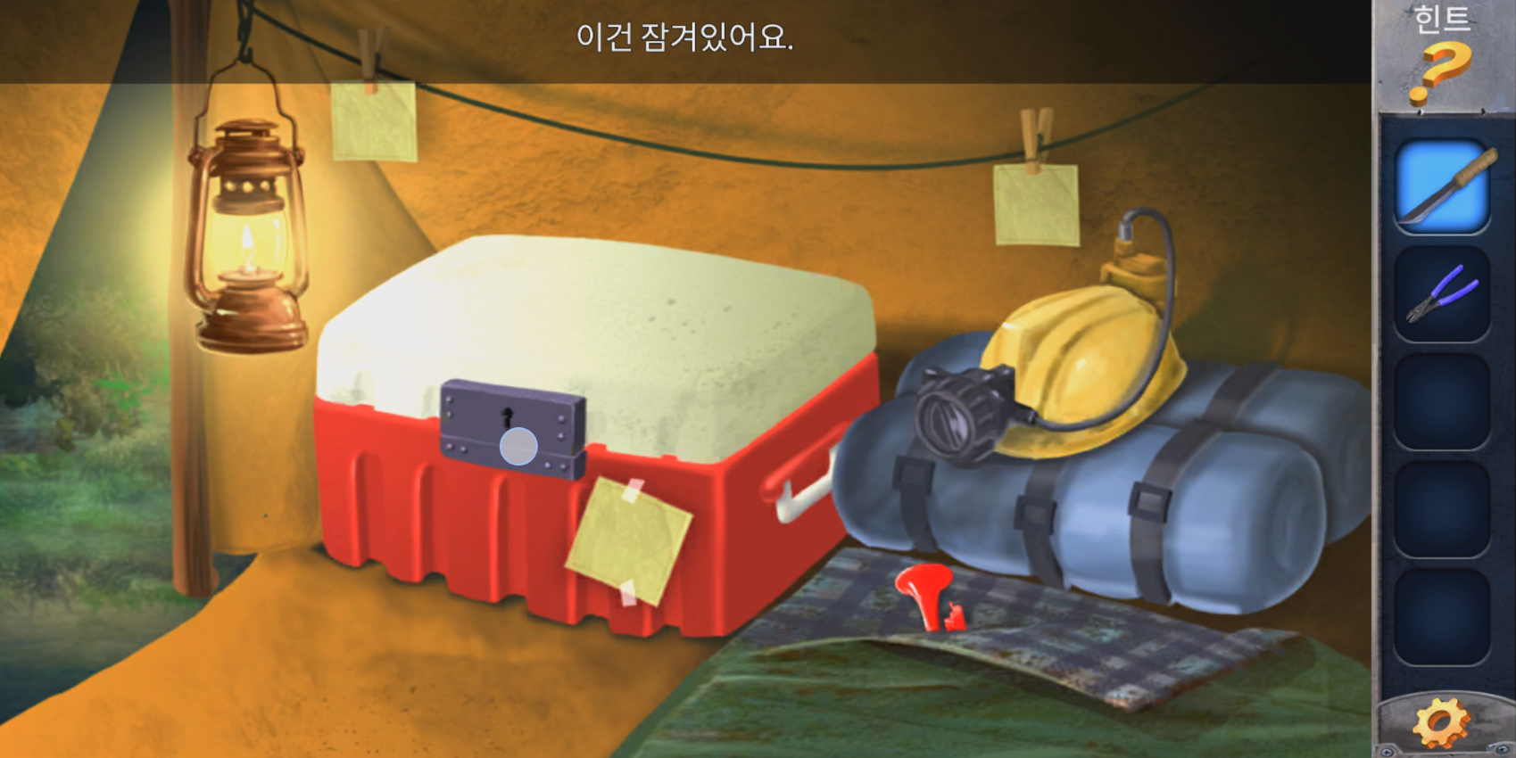칼로 텐트 쪽에 열쇠가 보이는 자리를 누르면