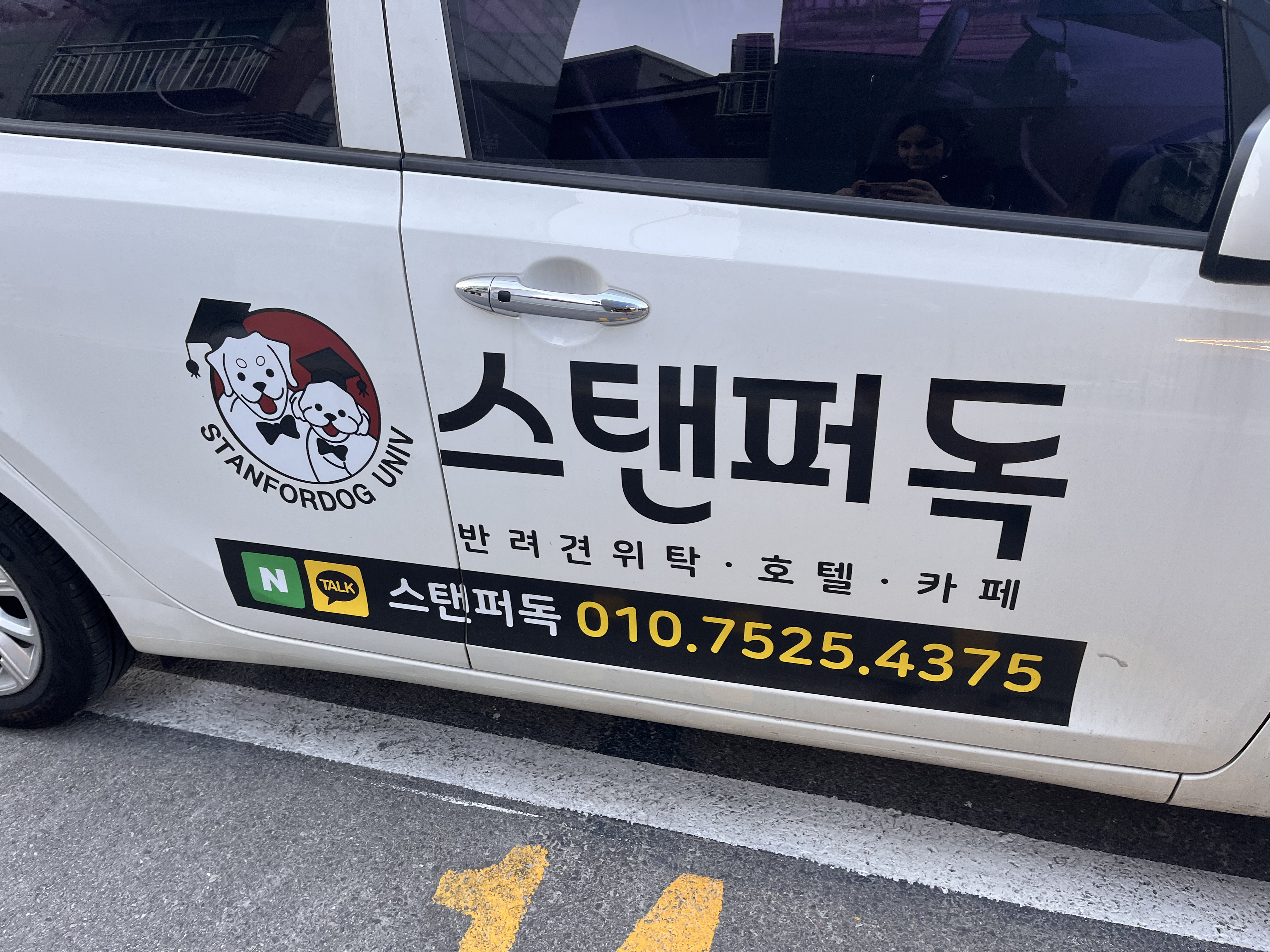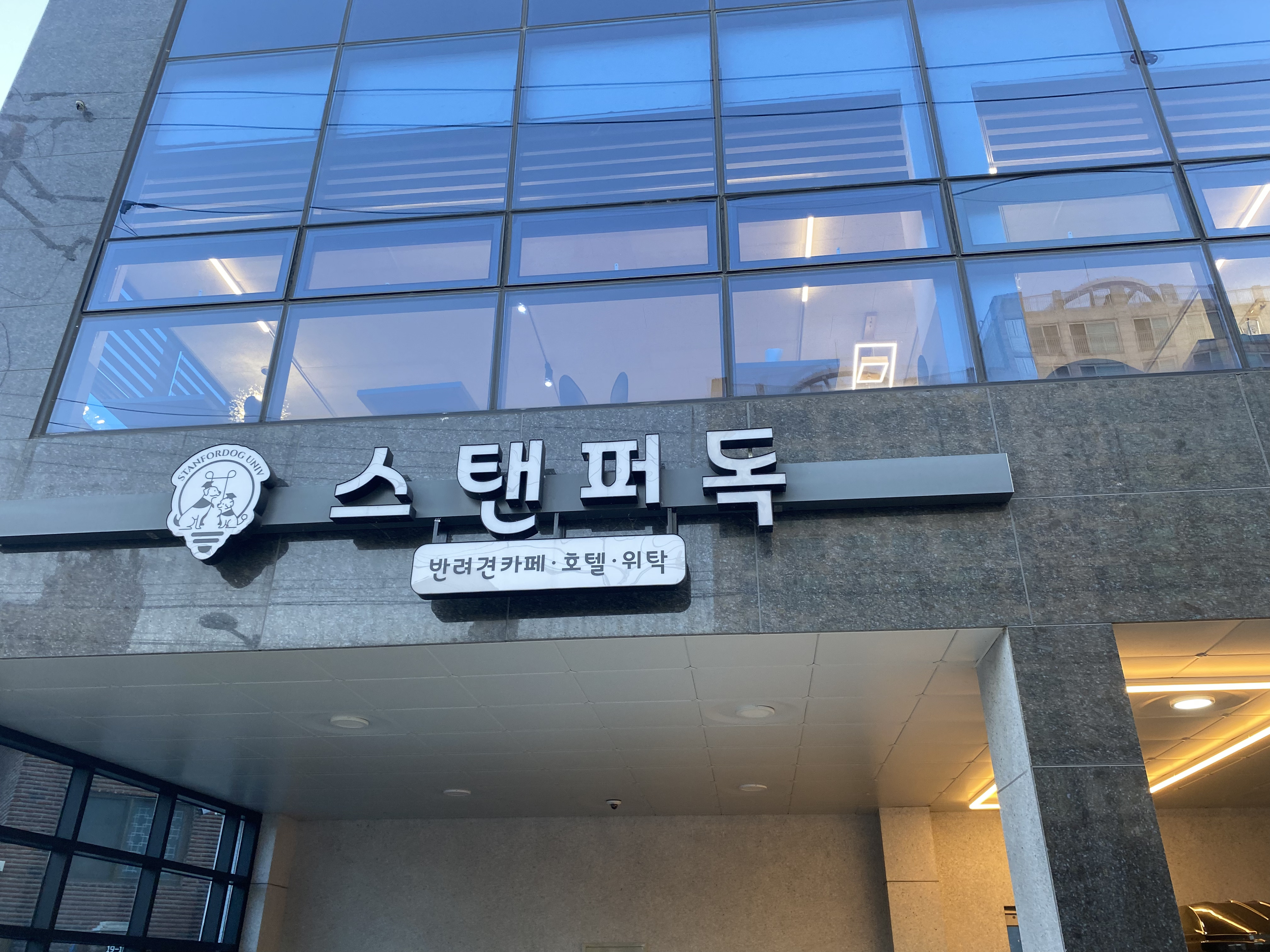 이렇게 생긴 건물 2층에 있는 스탠퍼독이 보인다