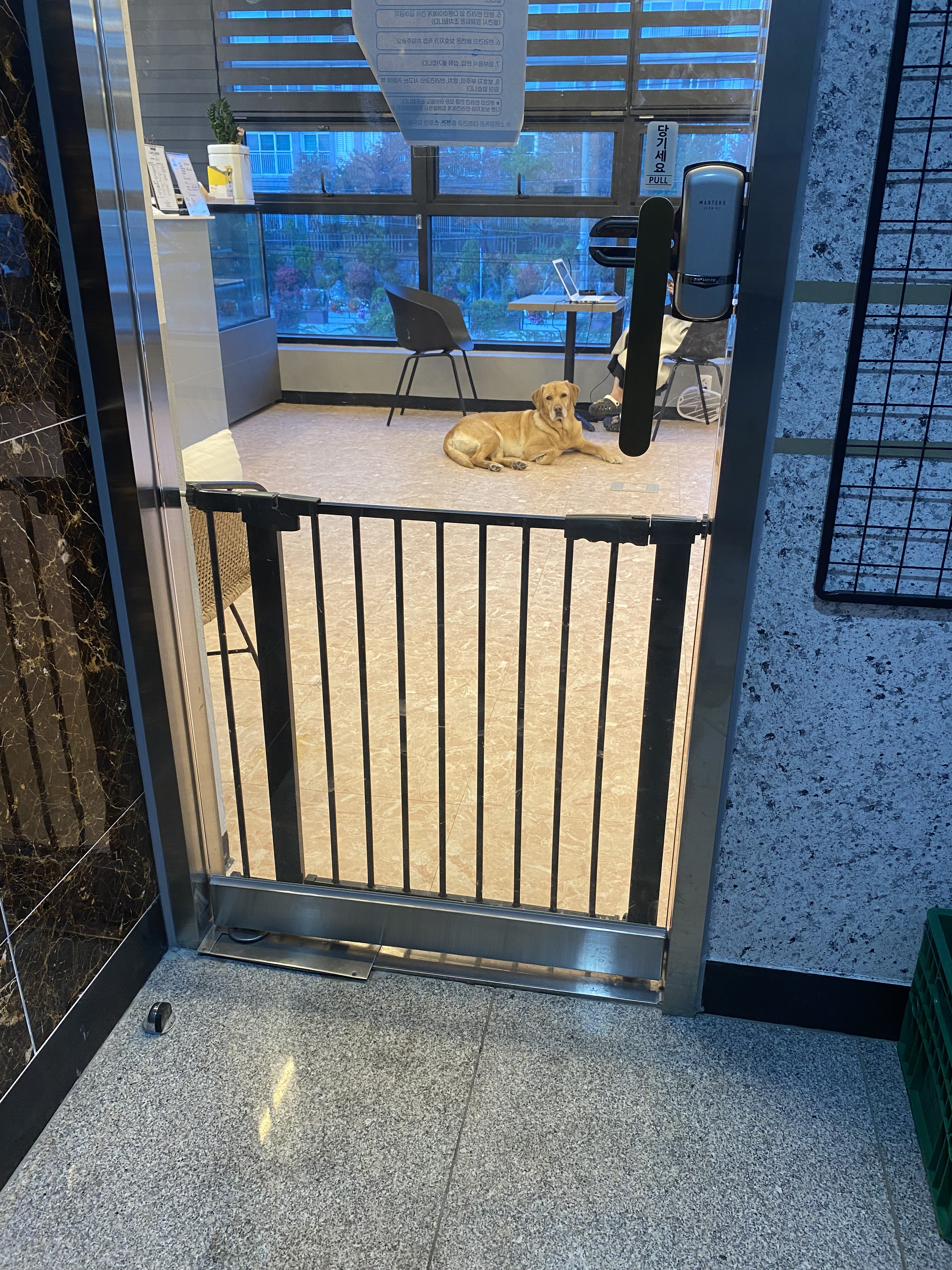 대형견을 무서워하는 경우에는 다른 카페를 이용해달라고 안내되어 있다