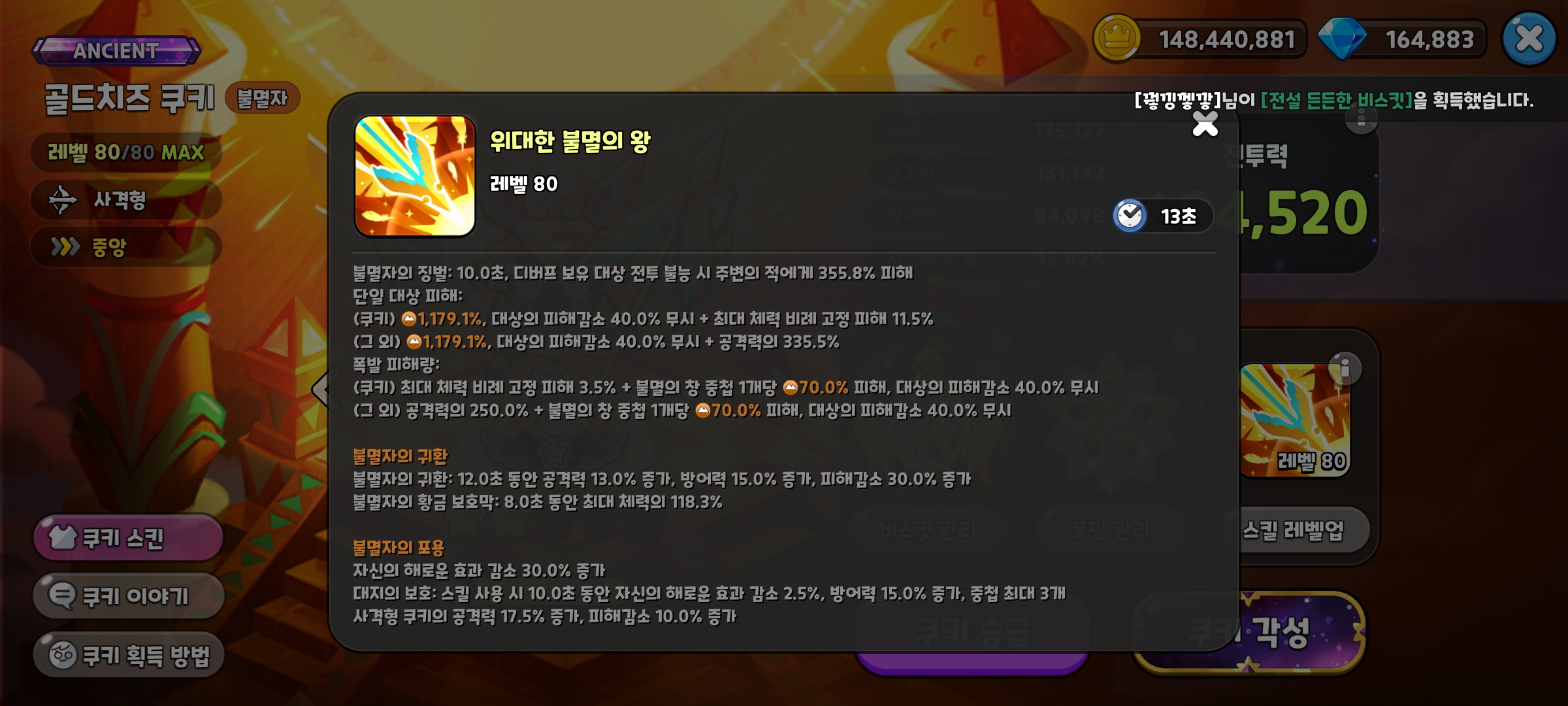 - 불멸자의 황금 보호막 : 8.0초 동안 최대 체력의 118.3%