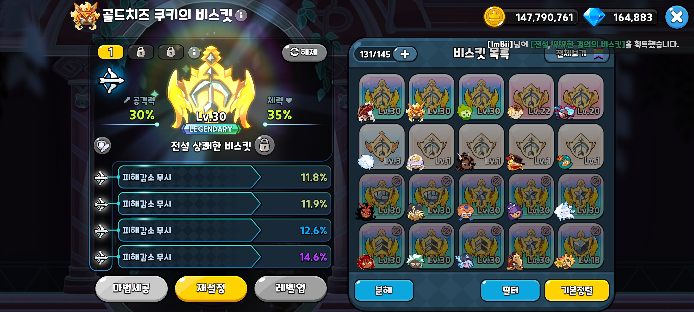 비스킷으로는 피해감소 무시로 전부 맞춰줬다
