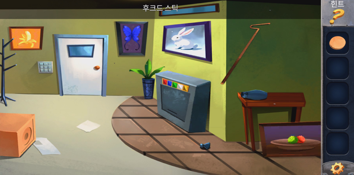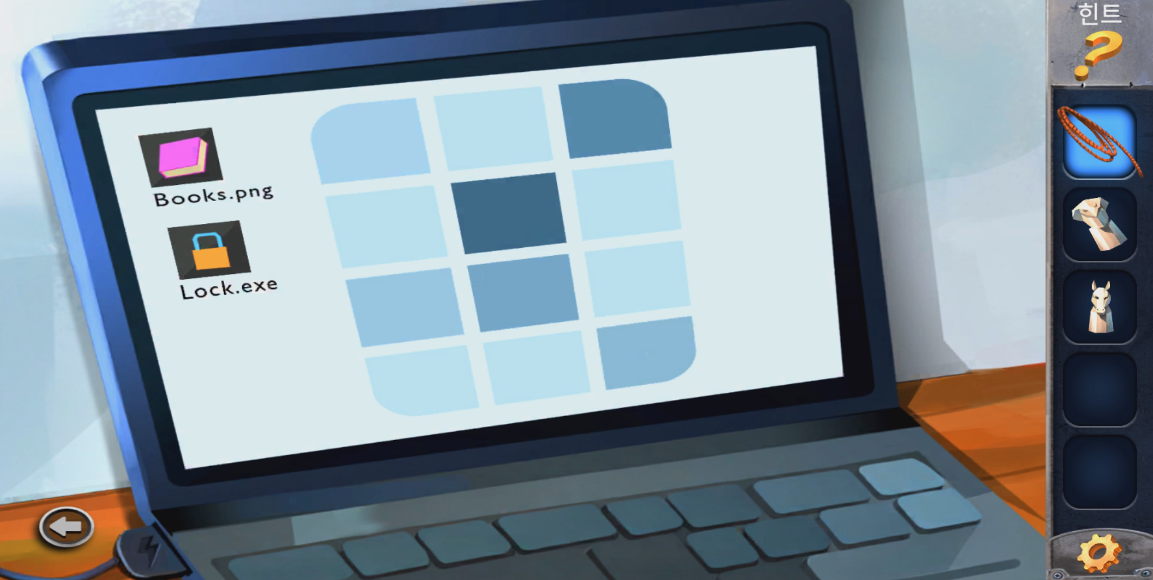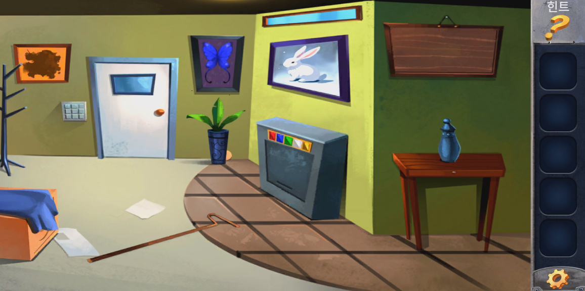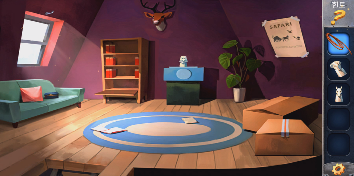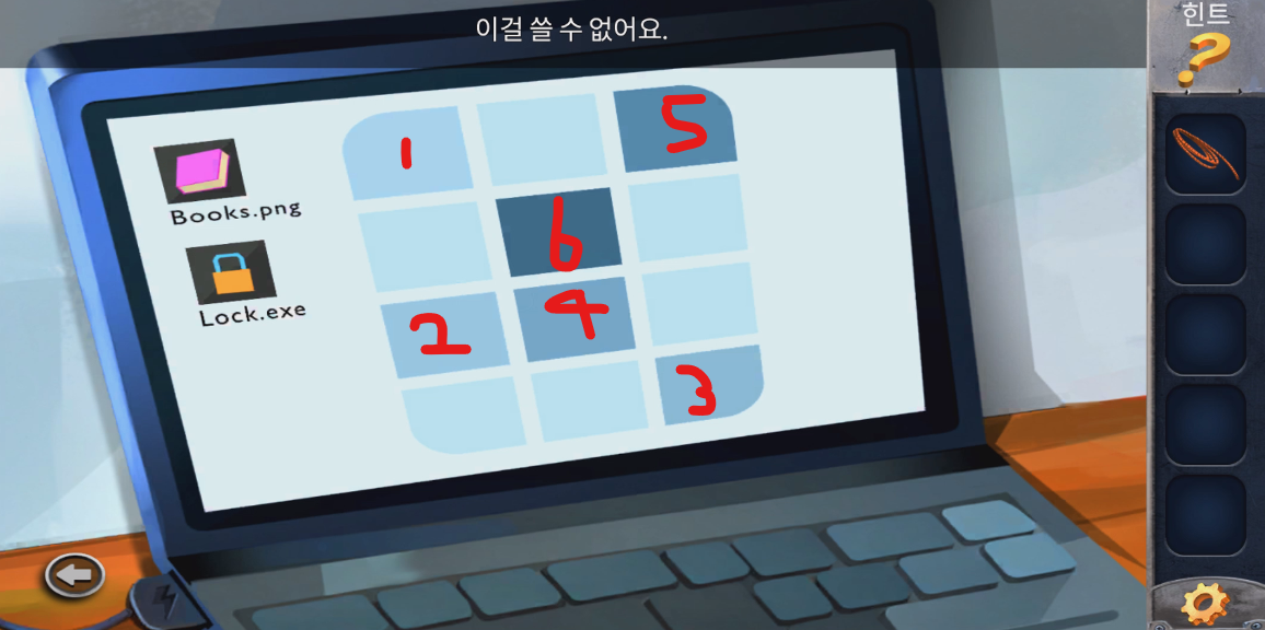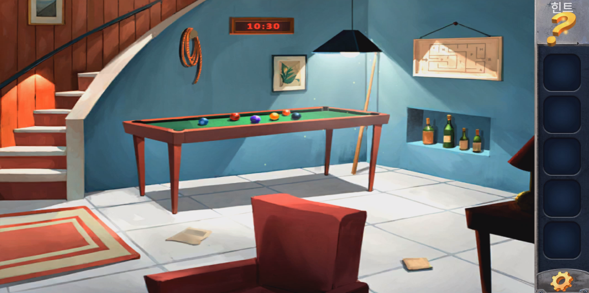 당구대 옆에 걸린 열쇠와 벽에 걸린 밧줄을 얻어주자