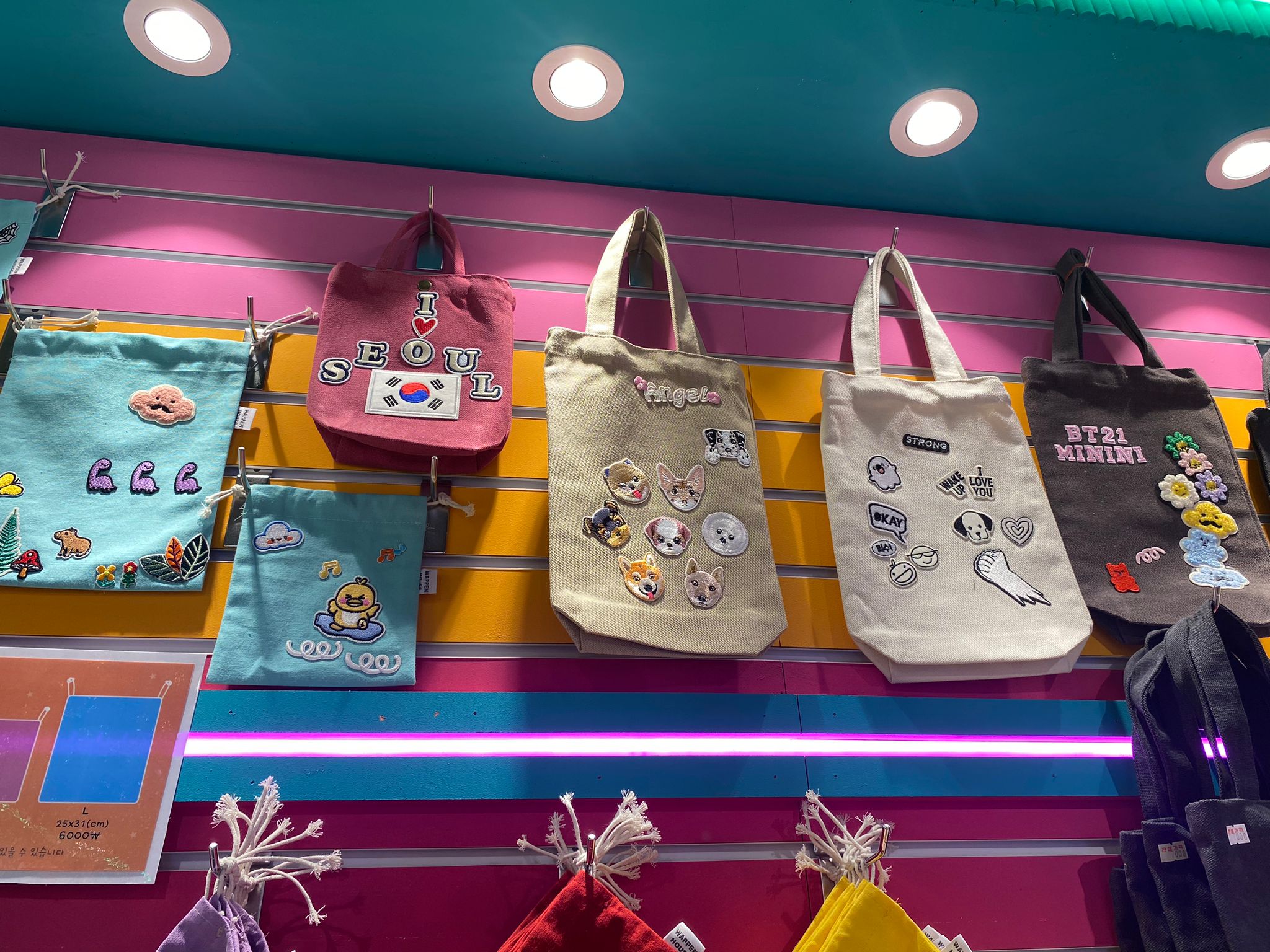 벽에 걸려 있는 필통, 가방, 에코백 등을 같이 구매해서