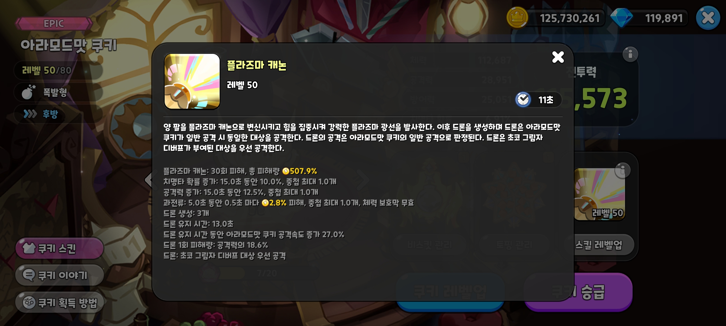 - 드론 유지 시간 동안 아라모드맛 쿠키 공격속도 증가 27.0%